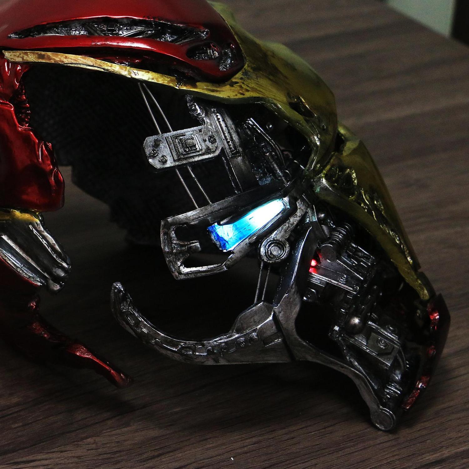 One is the Mark 50 from Endgame. The piece is truly amazing. It lights up, and activates via tapping on the forehead three times, just like Tony did in the movie. Then it plays his message to Pepper. I watched a video of it! Then there is the Mark 2 prototype. It lights up too, and is made of a heavy aluminum, polished to that awesome mirror shine! Check out the pics! I get the Mark 2 pretty fast. I have to wait for the Mark 50. |