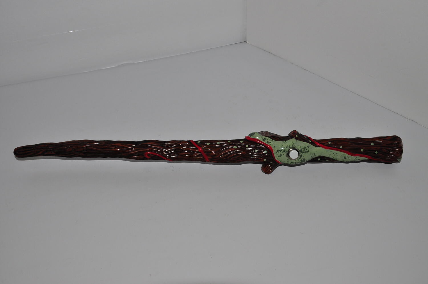 18" Long. Battery power. The Button starts a motor inside that make a whining noise only. No marking what so ever.