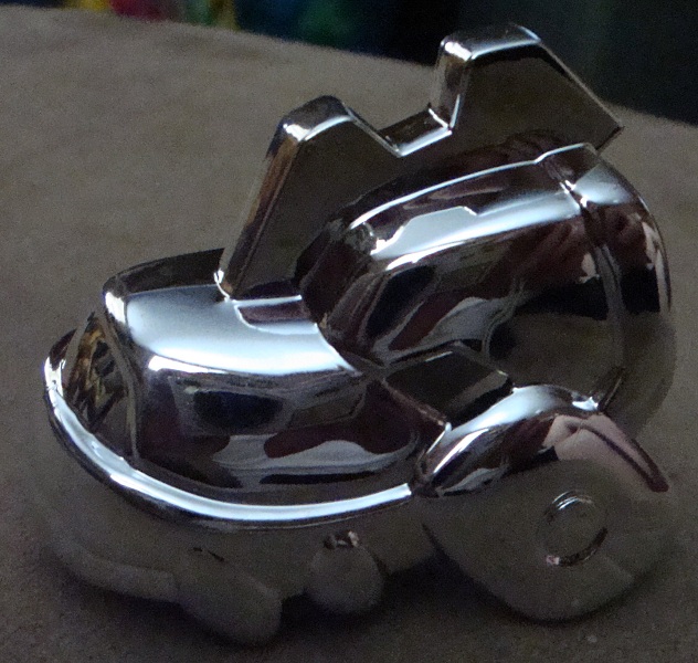 The tail spikes and eyes are painted over yellow plastic.