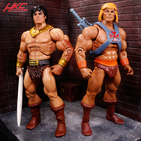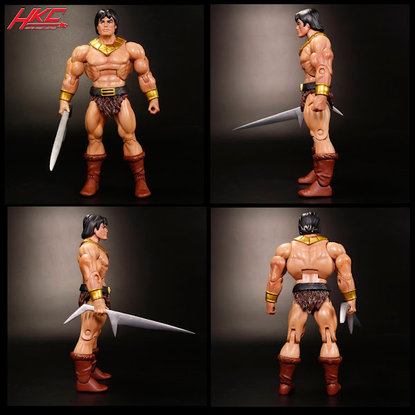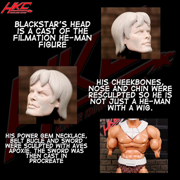He is basically a cast of the Filmation He-Man with resculpted cheek bones, chin and nose so it's not just a He-man with a black wig. The sword was first sculpted in Apoxie and then cast in Procreate.