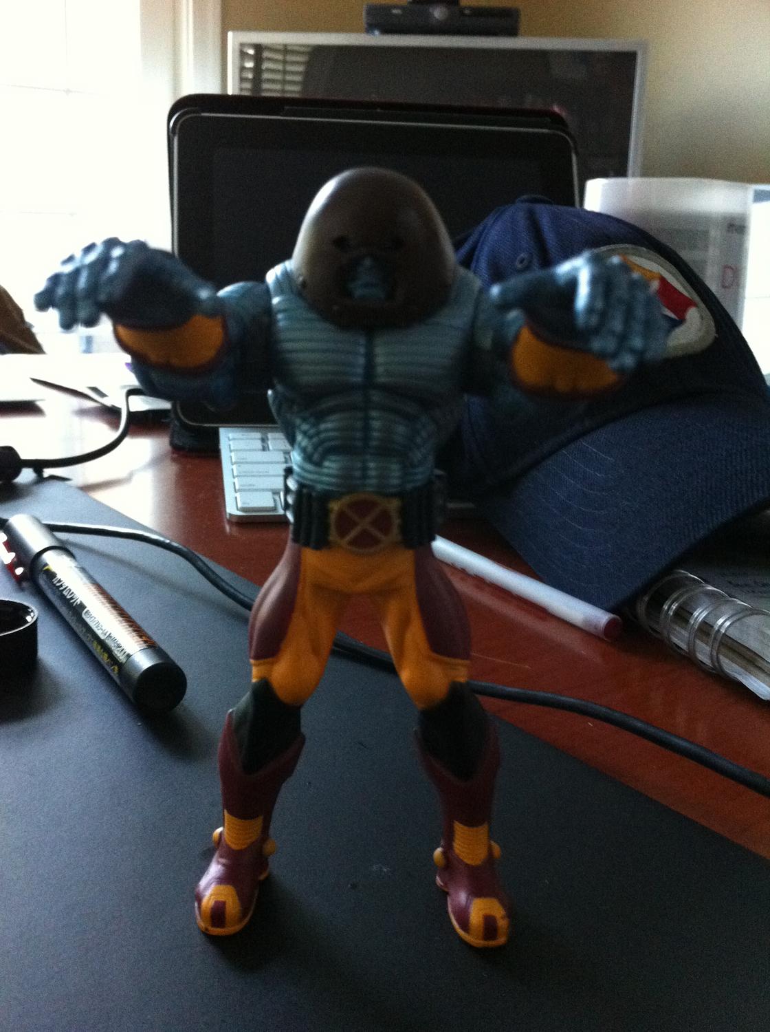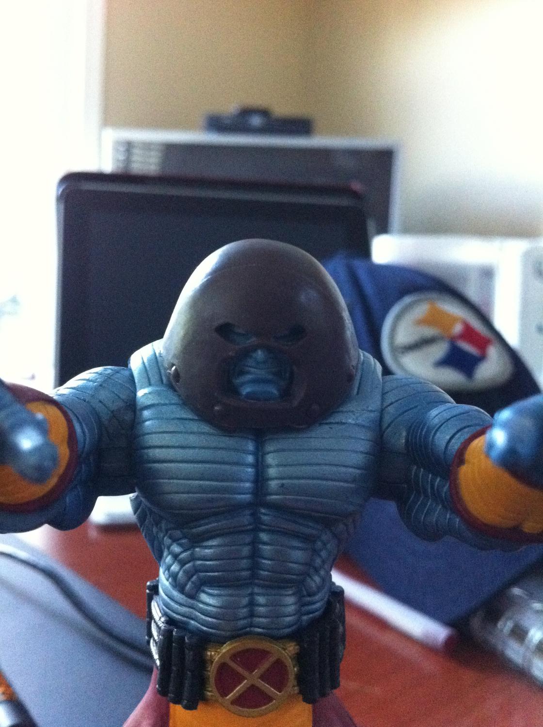 Made out of a 2 pack XMO: Colossus plus a helmet from SHS Juggernaut that I pliered out the head from. I then had to cut all but the face off the Colossus head and super glue it into the helmet in order for it fit properly.