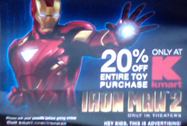 20%, coupons, iron man 2, k mart, k-mart, percent, toy