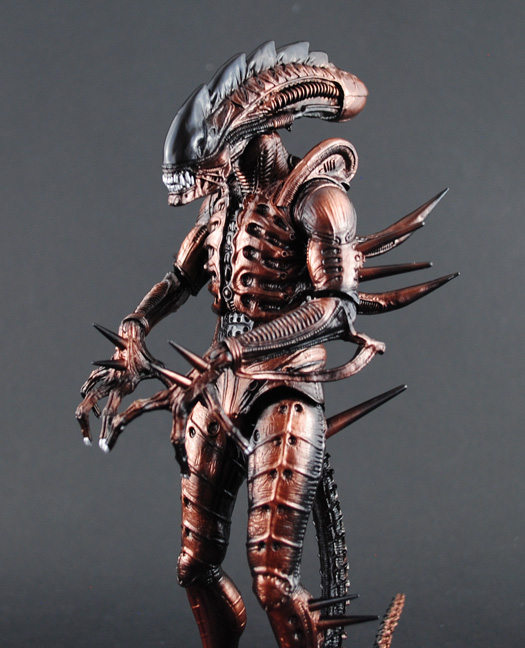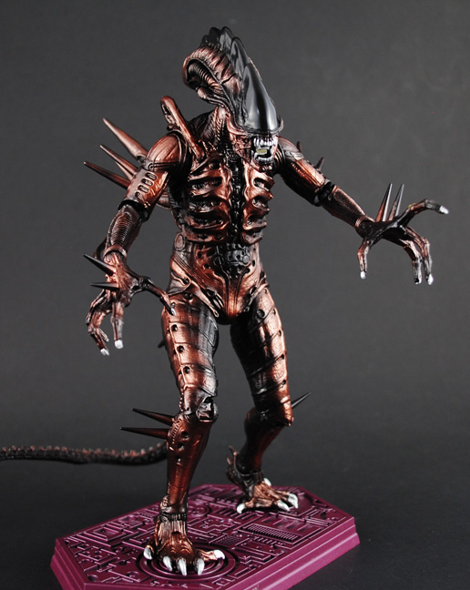 Aliens, xenomorphs, whatever you call them they're always deadly. These custom Kenner style Xenos take on characteristics of their hosts and this week I bring you the Scorpion Alien. He was created using the NECA Engineer body and warrior xeno parts. Spikes were added to the limbs like the vintage one had and the whole figure was wrapped up in metallic copper airbrushing.