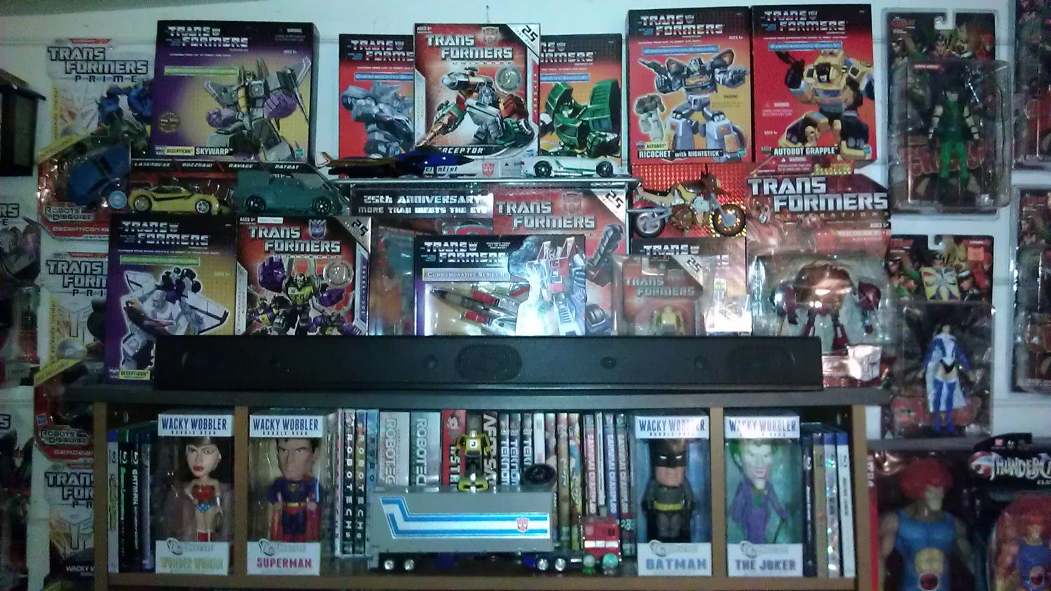 Here is my Toy Collection that I have currently displayed from the 1980's (Nostalgia) to the Present. Due to the lack of room size and my wife denying my request to take one of the larger rooms, I had to keep some my other toys in my collections in boxes for the time being. However, I am glad she allowed me to take over the Den to create my Toy Cave. "Compromise" is the best way to go