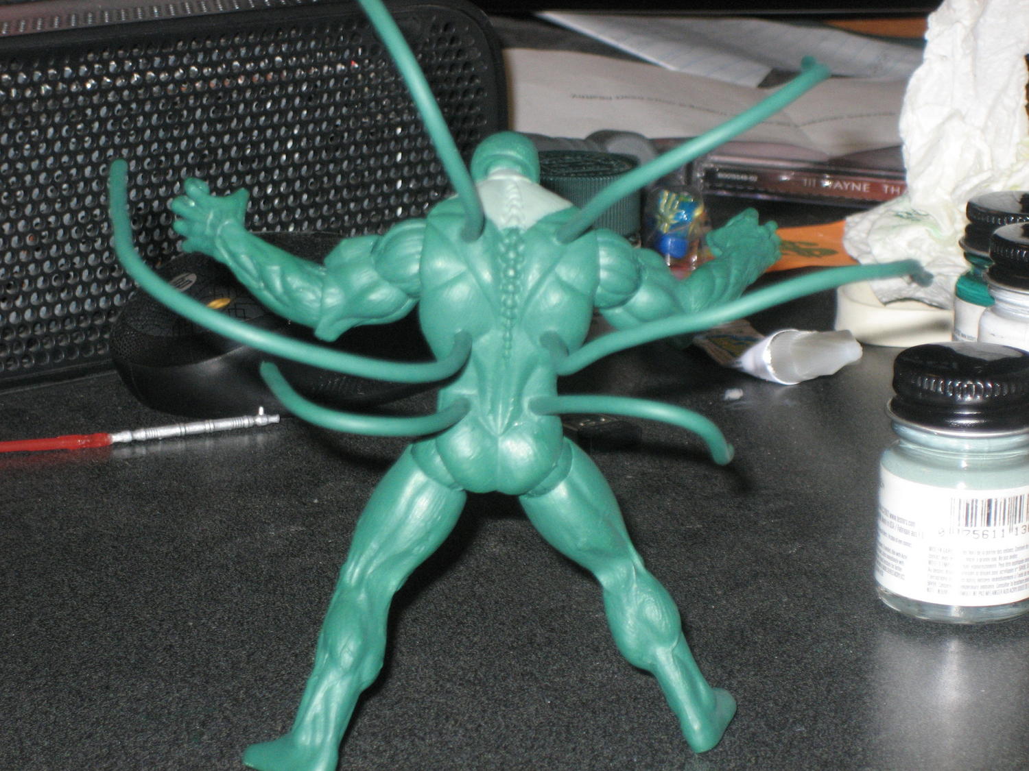 for your 1st custom this is damn good, way better then my 1st one lol. real nice clean paint apps. another trick i saw for tenticles is hot glue and twisty ties. once u put the glue on u can still move and bend the twisty ties without messing up anything