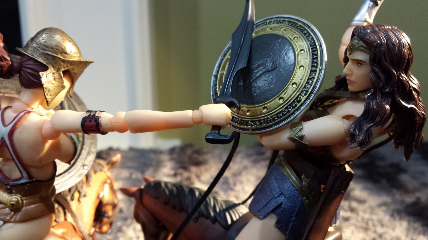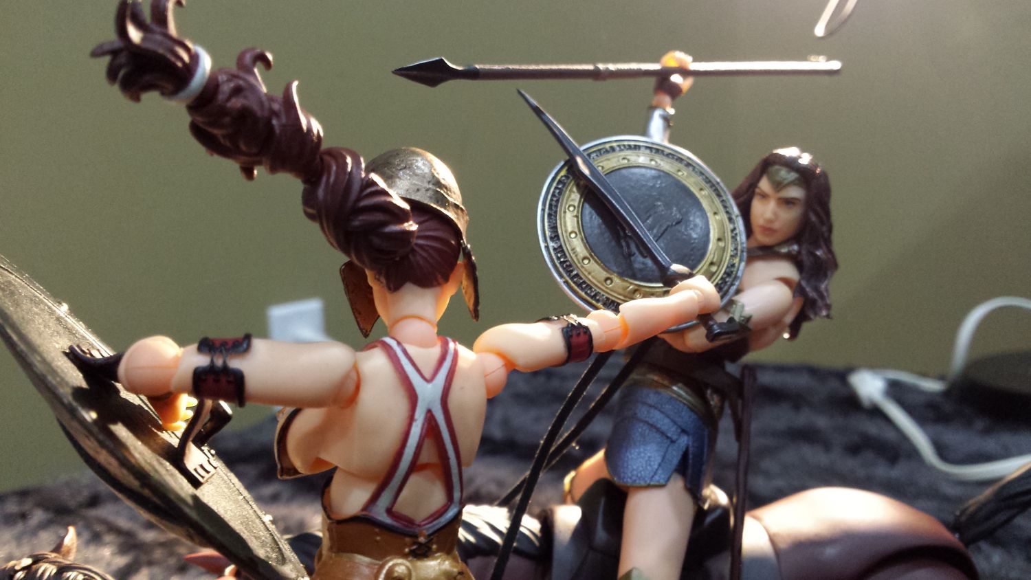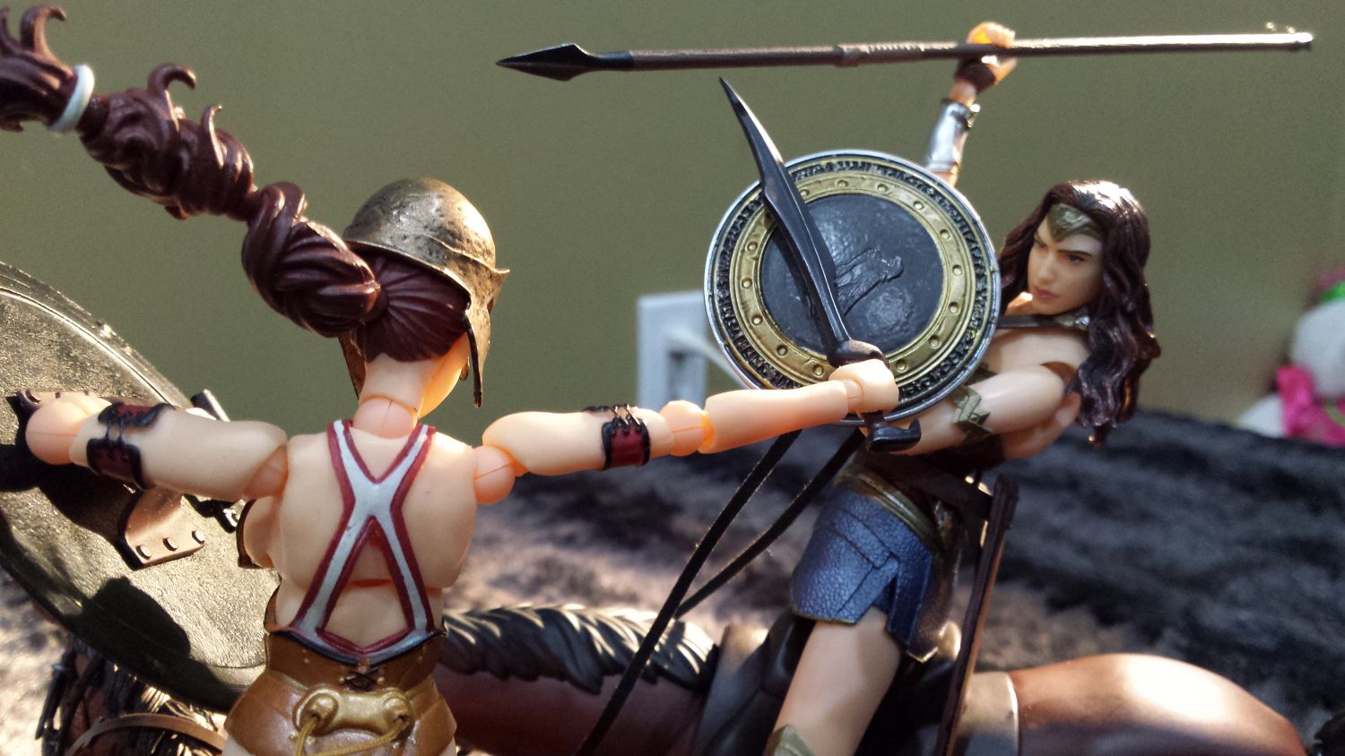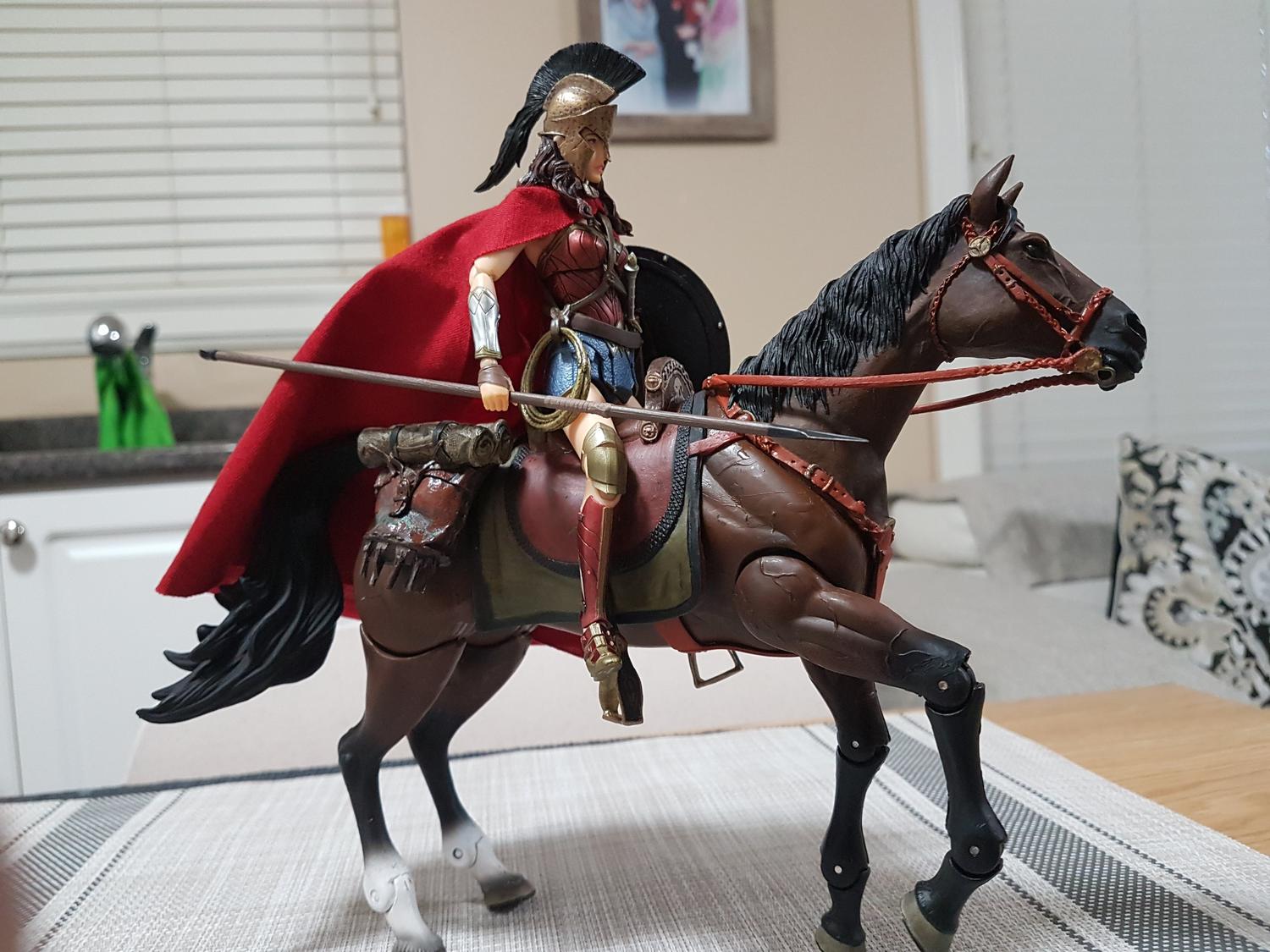 Battle of amazons! Its revoltech queen's blade brawnen..i gave her weapons fron figma leonidas and a kt project horse versus wonder woman on a figma horse.