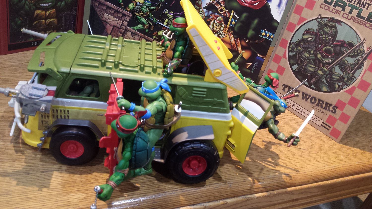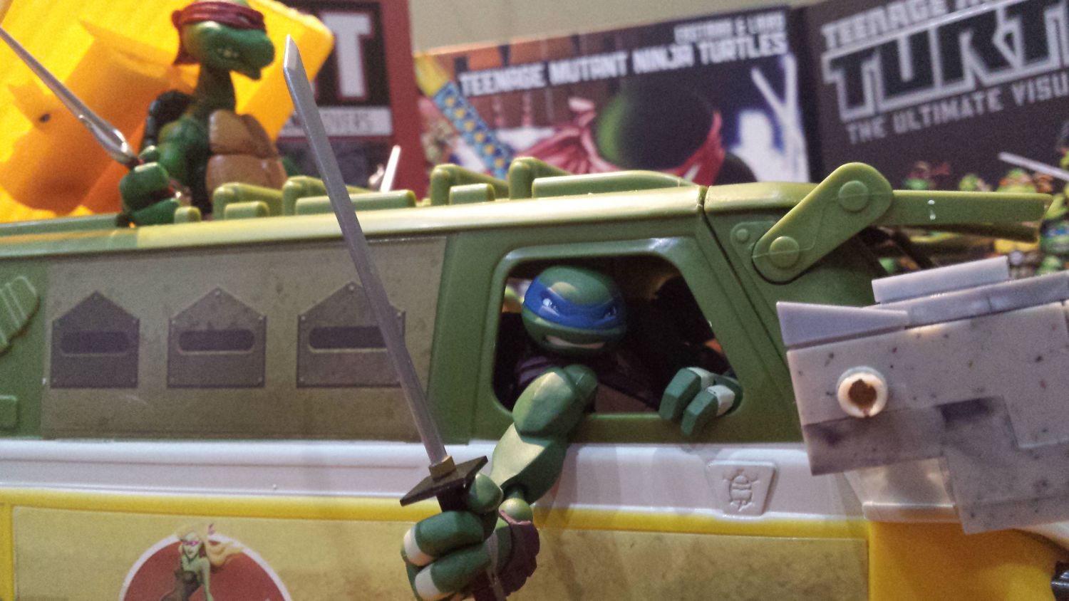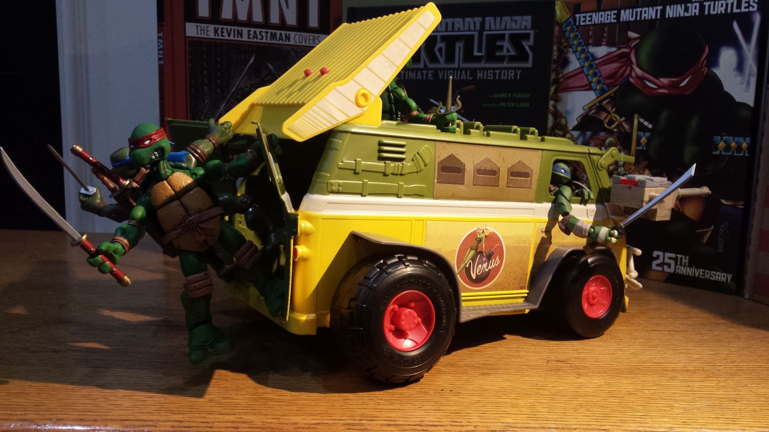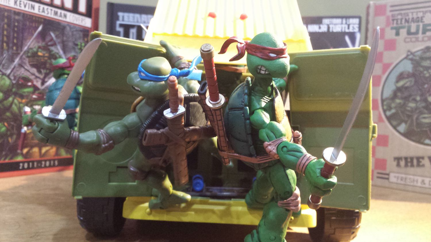 Turtles Forever! Turtles from 4 generations ward off attacks from all side of the party van. Revoltech Donnie is the driver..with revoltech Leo in the front cabin. Sh Figuarts Leo and Neca Mikey fighting off foot soldiers from the side door. Neca Raphael on the rooftop with 2003 Leo and Neca Leo defending the rear side of the van. Notice that two front cannons are formed from Mega Bloks..they are fully functional with light and sound at the press of a button.