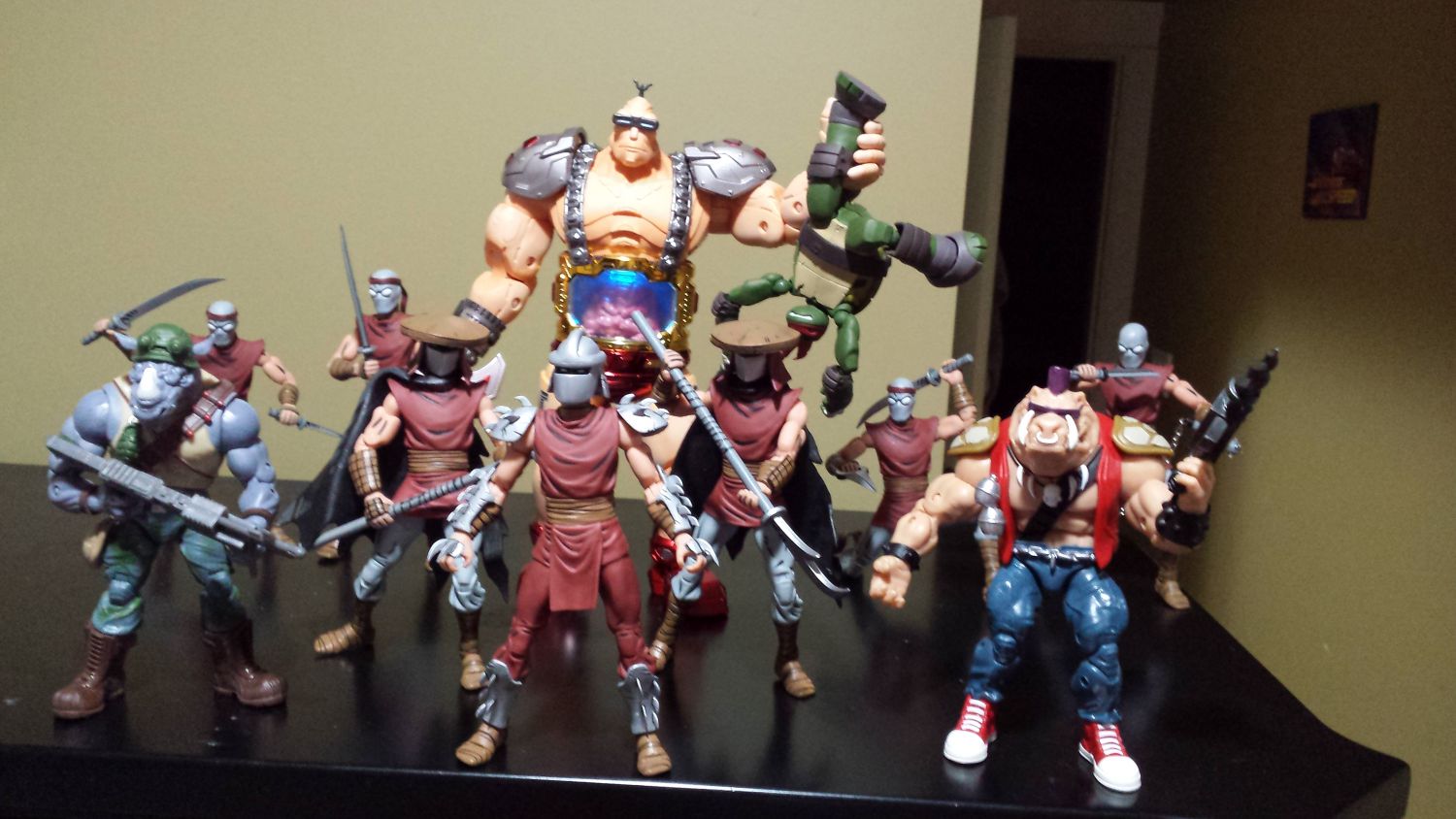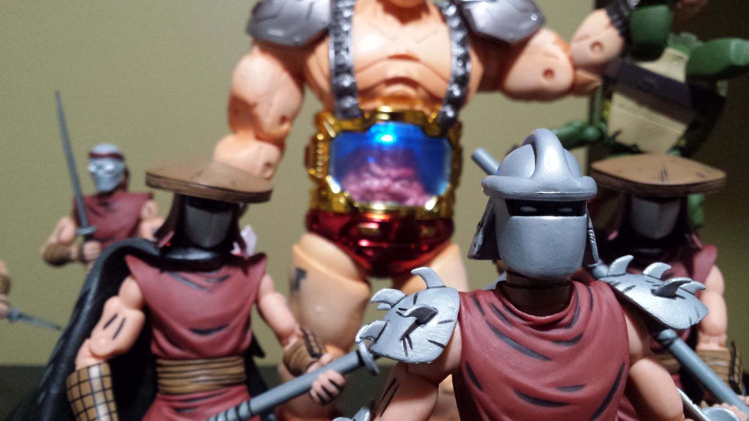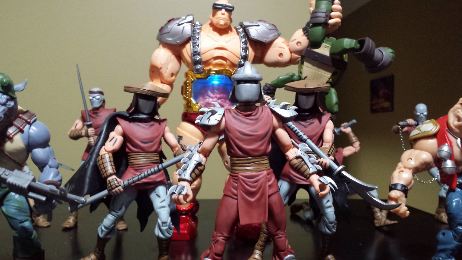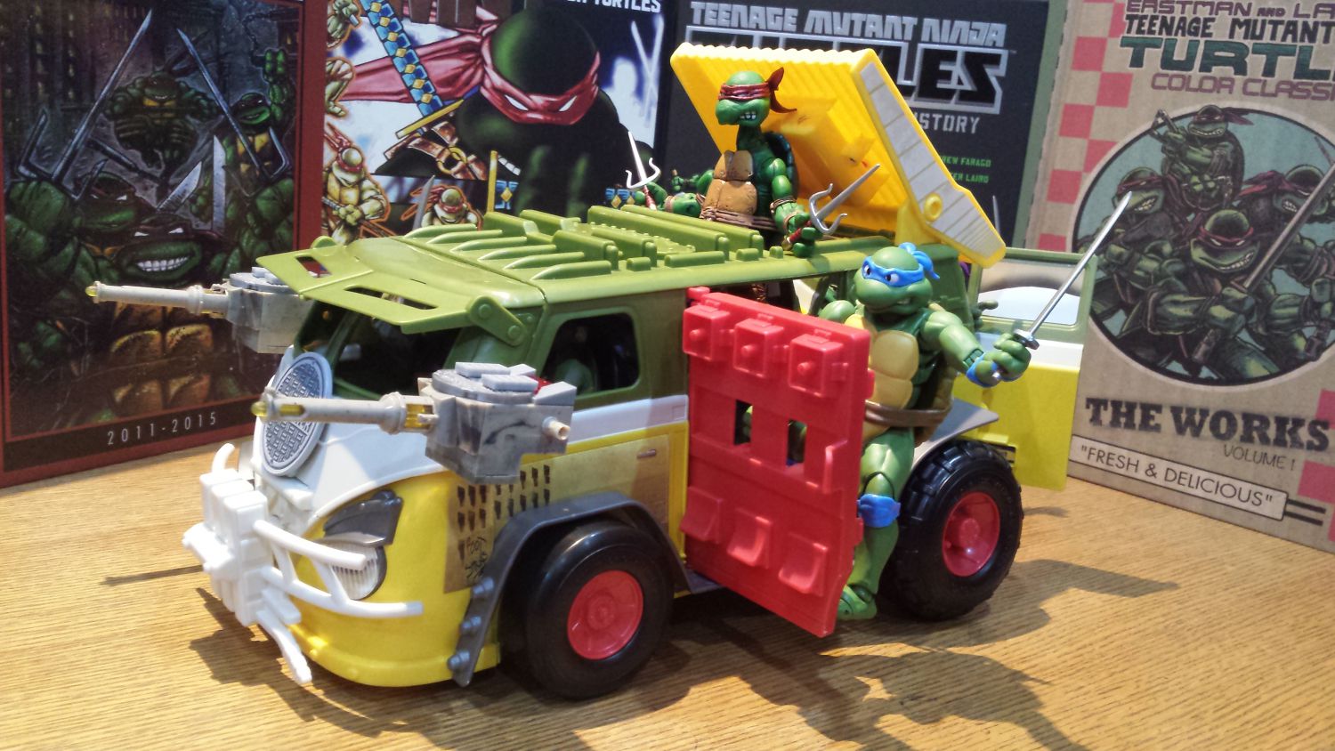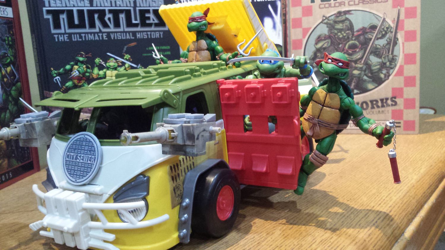 Turtles Forever! Turtles from 4 generations ward off attacks from all side of the party van. Revoltech Donnie is the driver..with revoltech Leo in the front cabin. Sh Figuarts Leo and Neca Mikey fighting off foot soldiers from the side door. Neca Raphael on the rooftop with 2003 Leo and Neca Leo defending the rear side of the van. Notice that two front cannons are formed from Mega Bloks..they are fully functional with light and sound at the press of a button.
