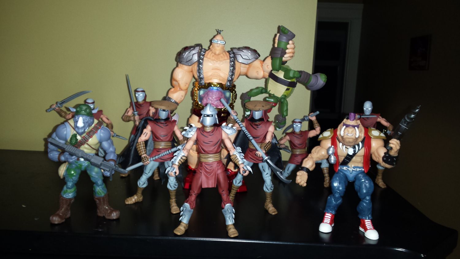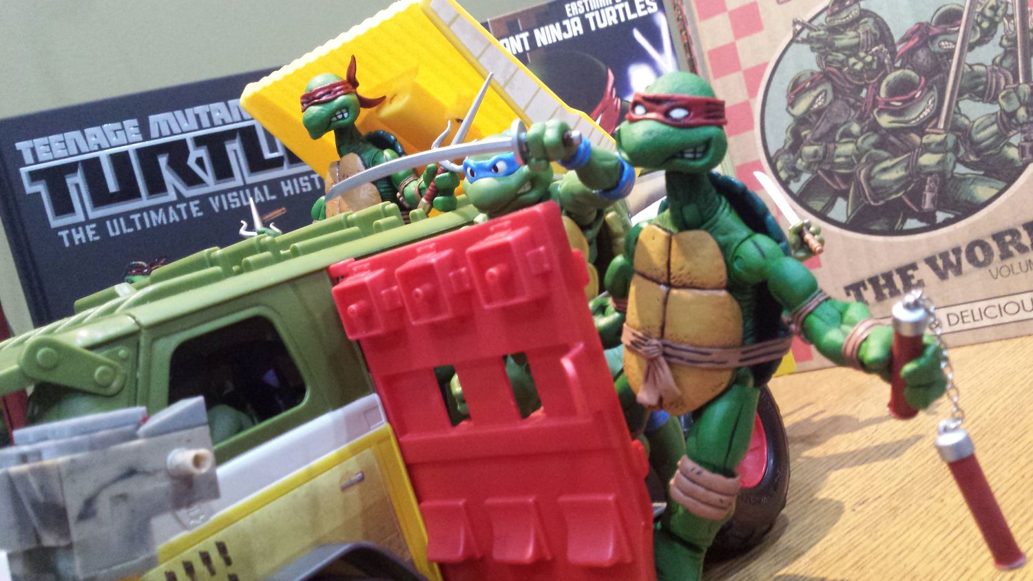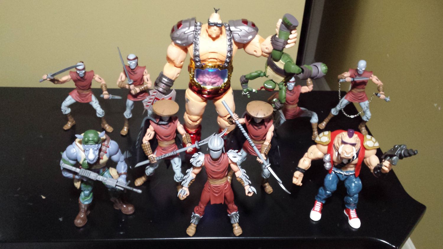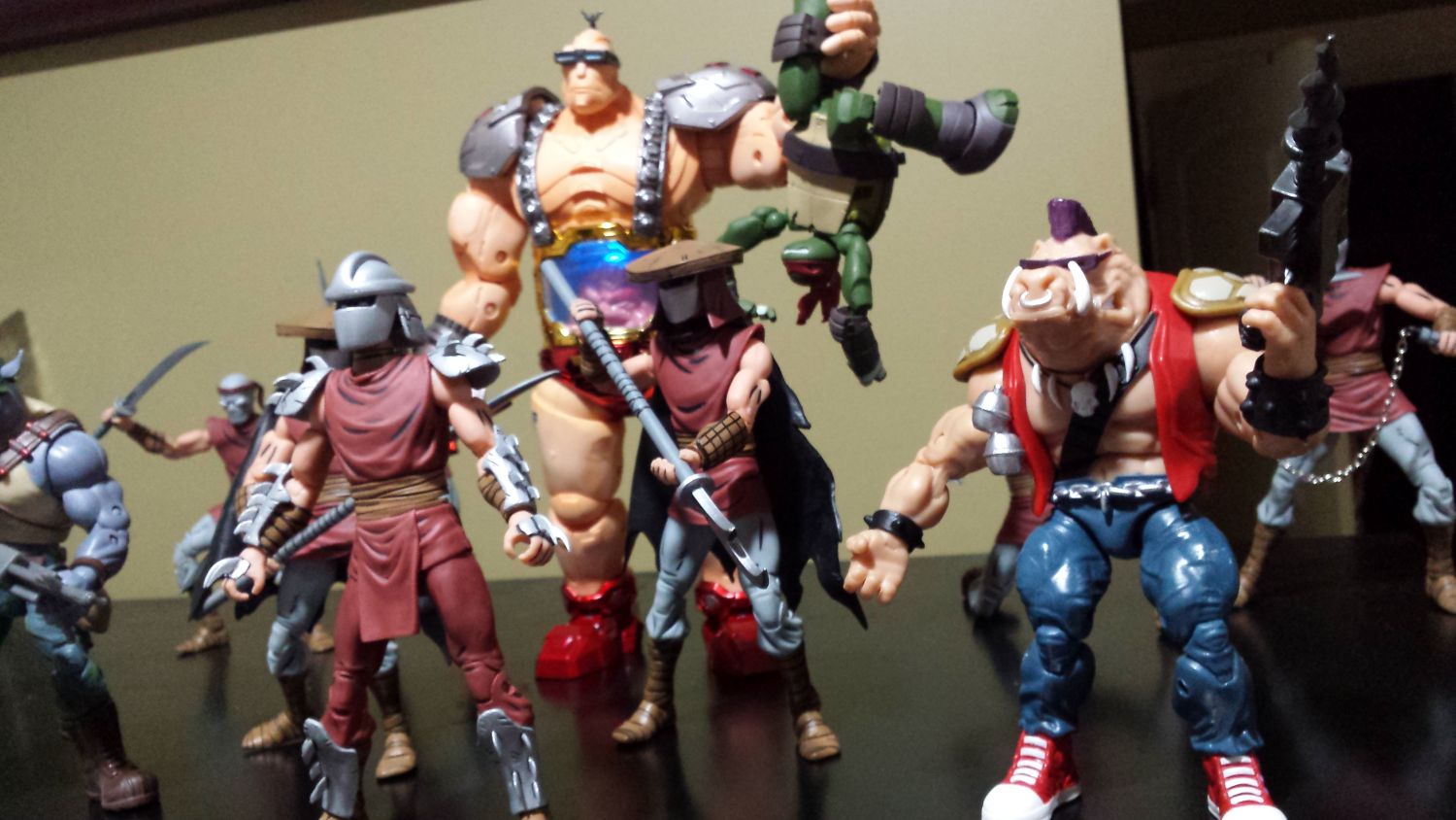 Turtles Forever! Turtles from 4 generations ward off attacks from all side of the party van. Revoltech Donnie is the driver..with revoltech Leo in the front cabin. Sh Figuarts Leo and Neca Mikey fighting off foot soldiers from the side door. Neca Raphael on the rooftop with 2003 Leo and Neca Leo defending the rear side of the van. Notice that two front cannons are formed from Mega Bloks..they are fully functional with light and sound at the press of a button.