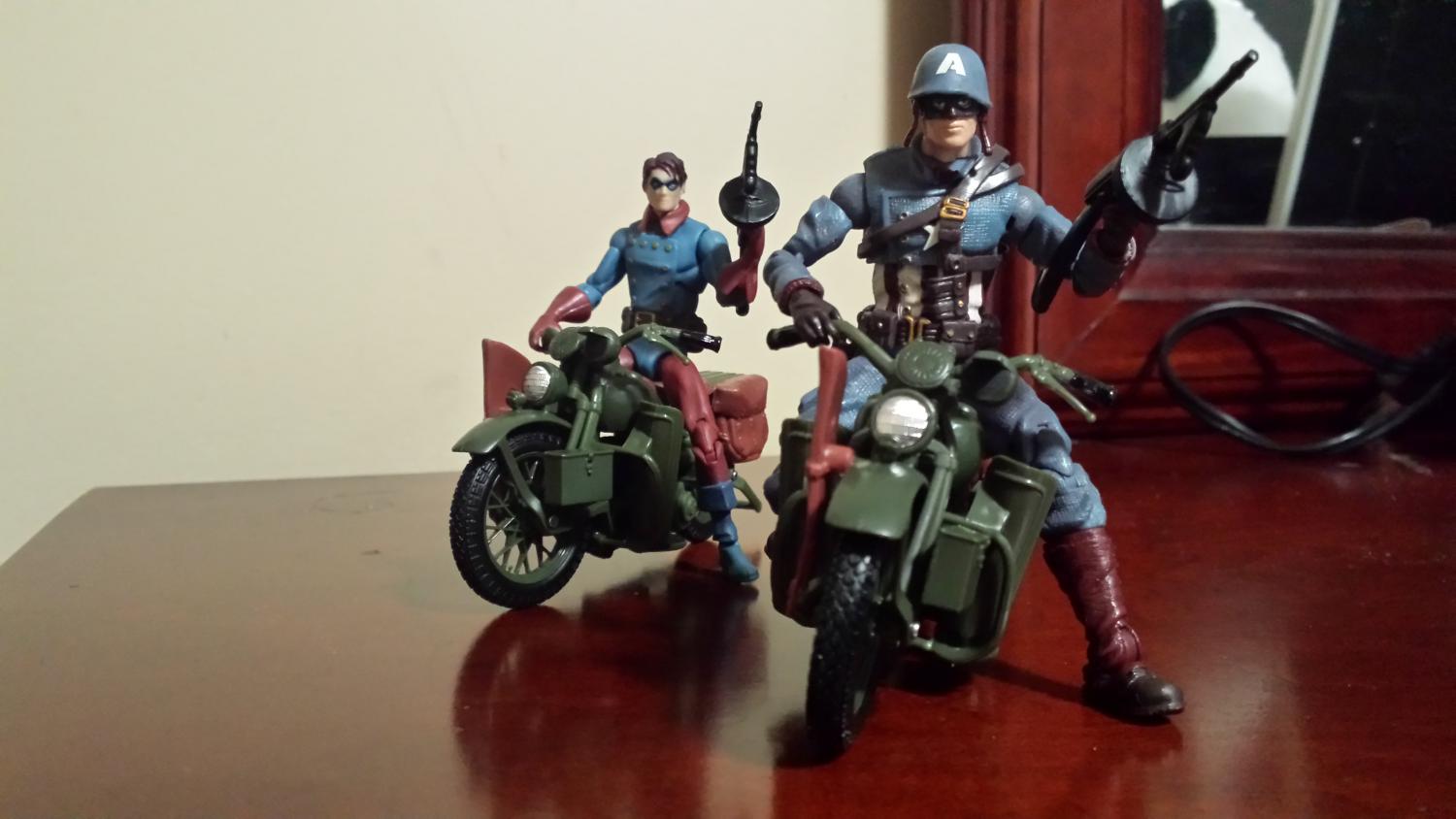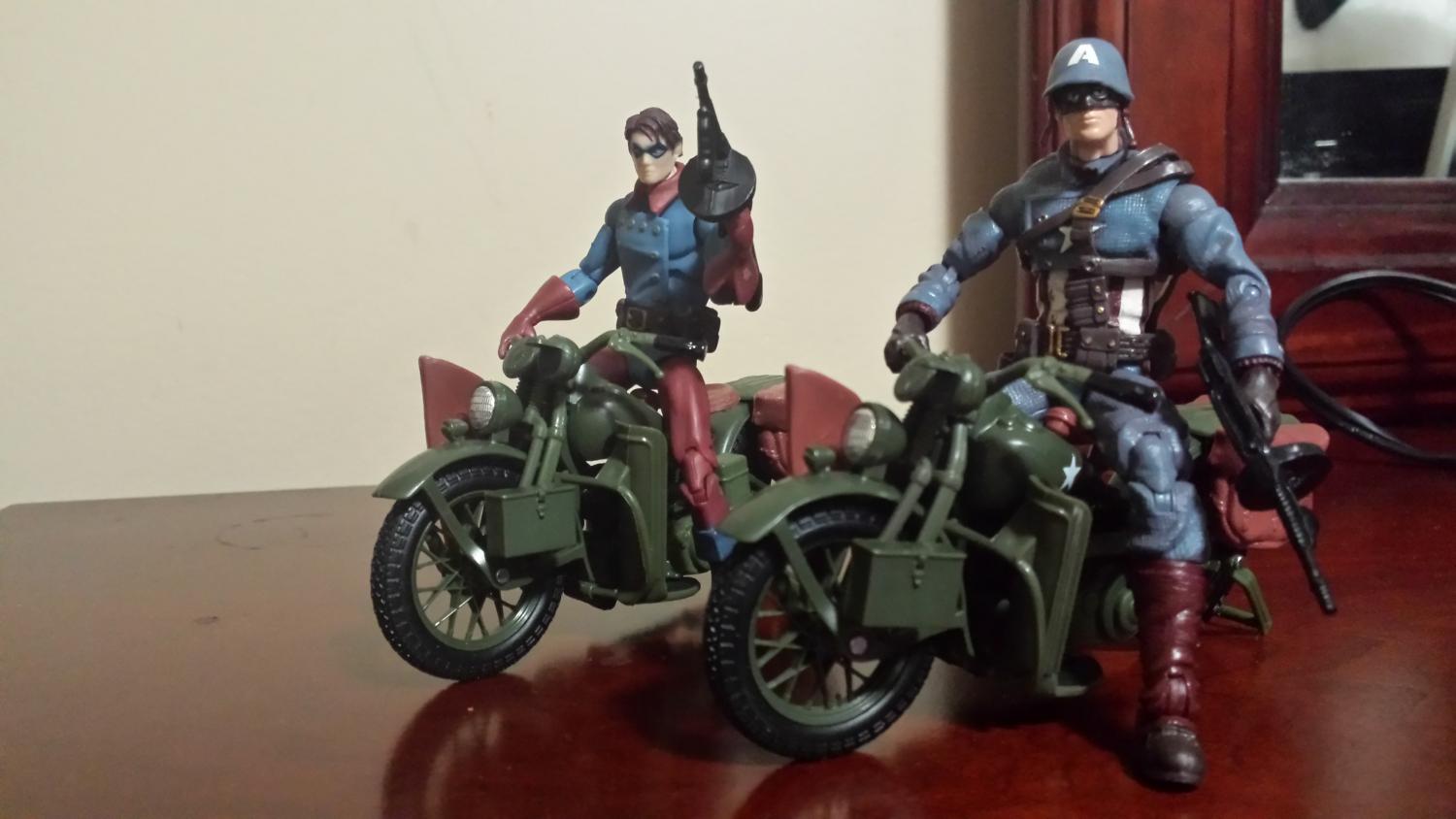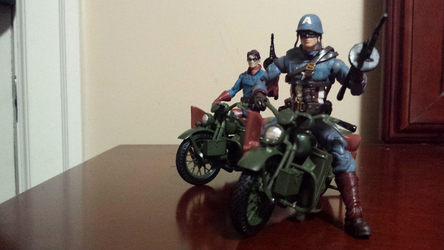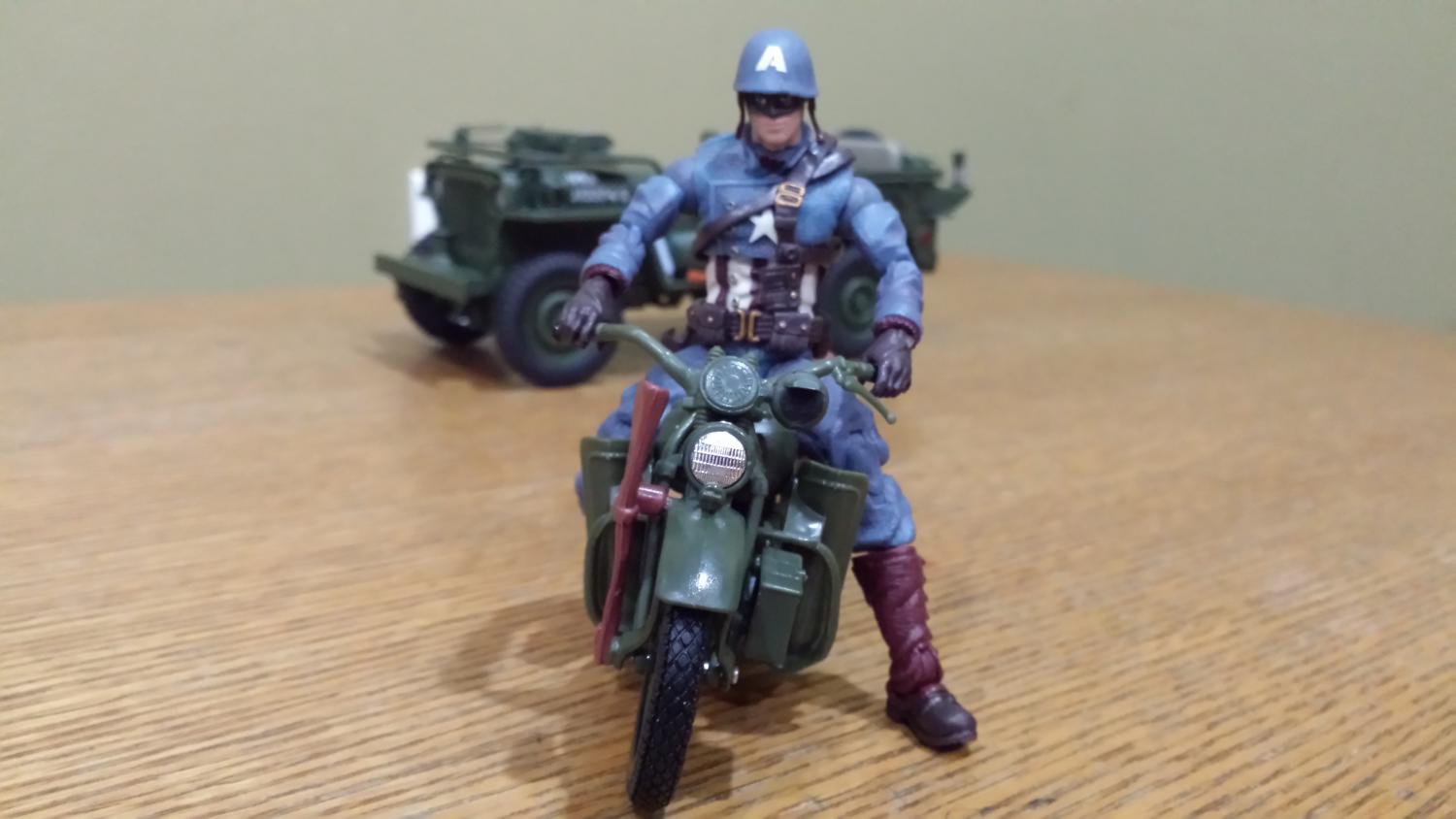 Been waiting for the Bucky figure and my second Maisto Panhead to pose them together with WW II Cap.