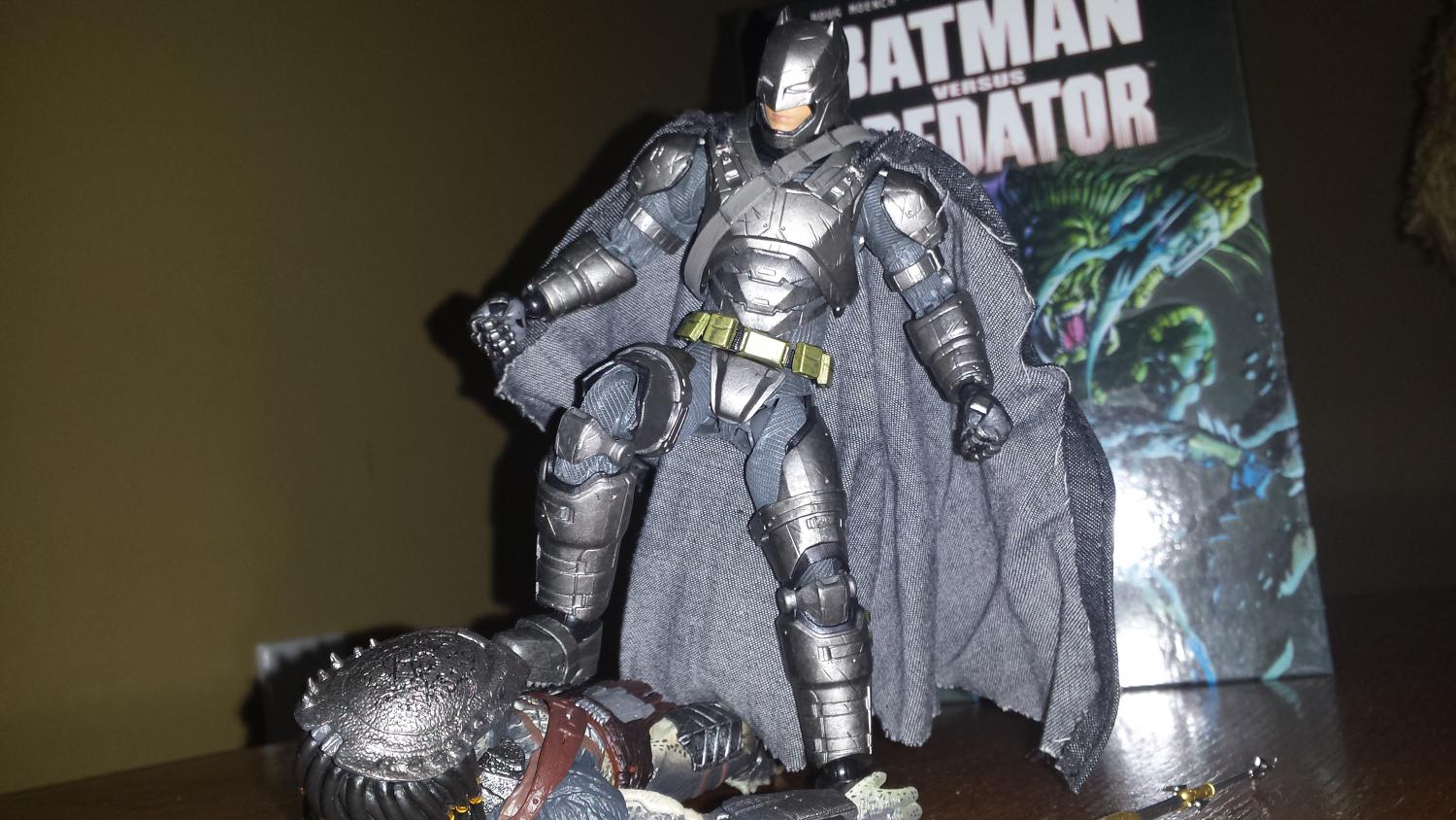 The only reason i got Mafex Armored Batman was that i could pit him against my Predators! This figure has an amazing balance..in one of the pics i posed him with the SH Figuarts Predator lifted on his head..without having to use any support or stands. Even the Revoltech Predator makes a cameo. Armored Batman actually does looks like he can kick Predator's ass.