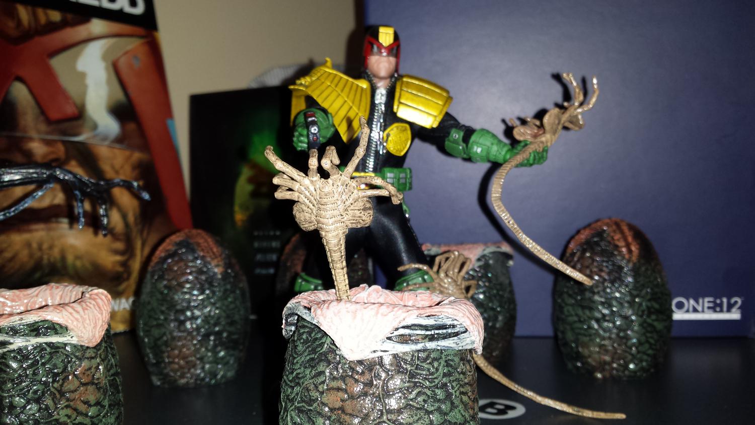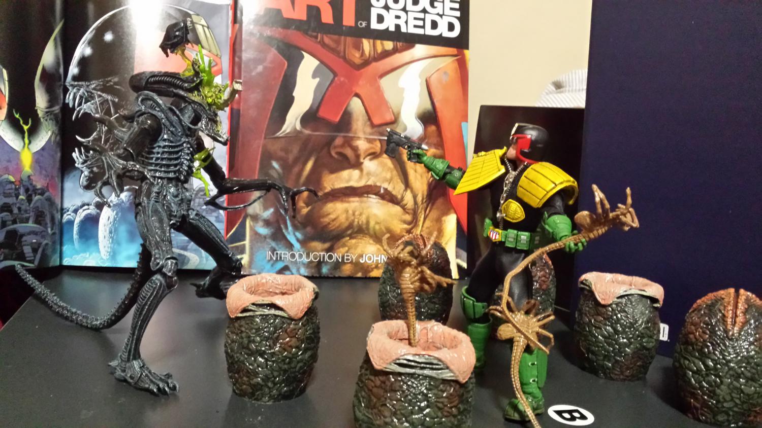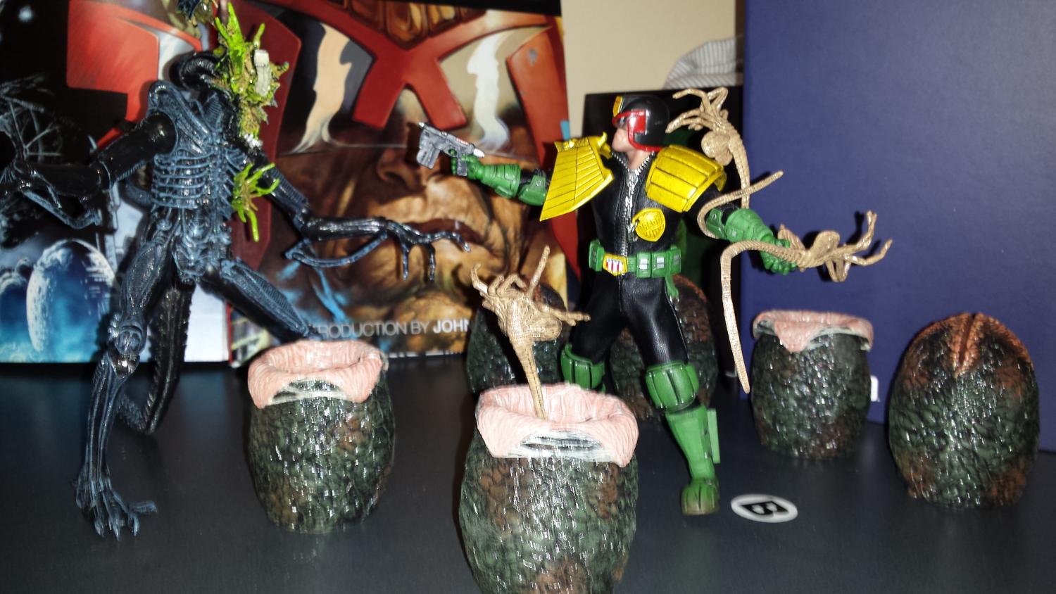 Mezco Dredd and my only Neca Alien figure with Aliens eggs and facehuggers.