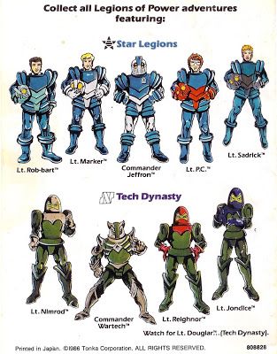 So looking at your Star Legions figures, I see Lt. P.C., Lt. Rob-Bart, and Lt. Marker, which means you probably own the In Flight Command Vehicles, the Land Rovers and a Space Fighters, respectively.
