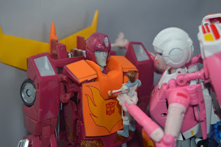 "No, it's not blaster envy!" Hotrod: "What is that?" Daniel: "Daddy?!" Hotrod: *gulp* "Je m'appelle Hhhhut rhud!" "Thank goodness I didn't squish this one like I did his sibl... errr... Daniel, let's get some icecream!"