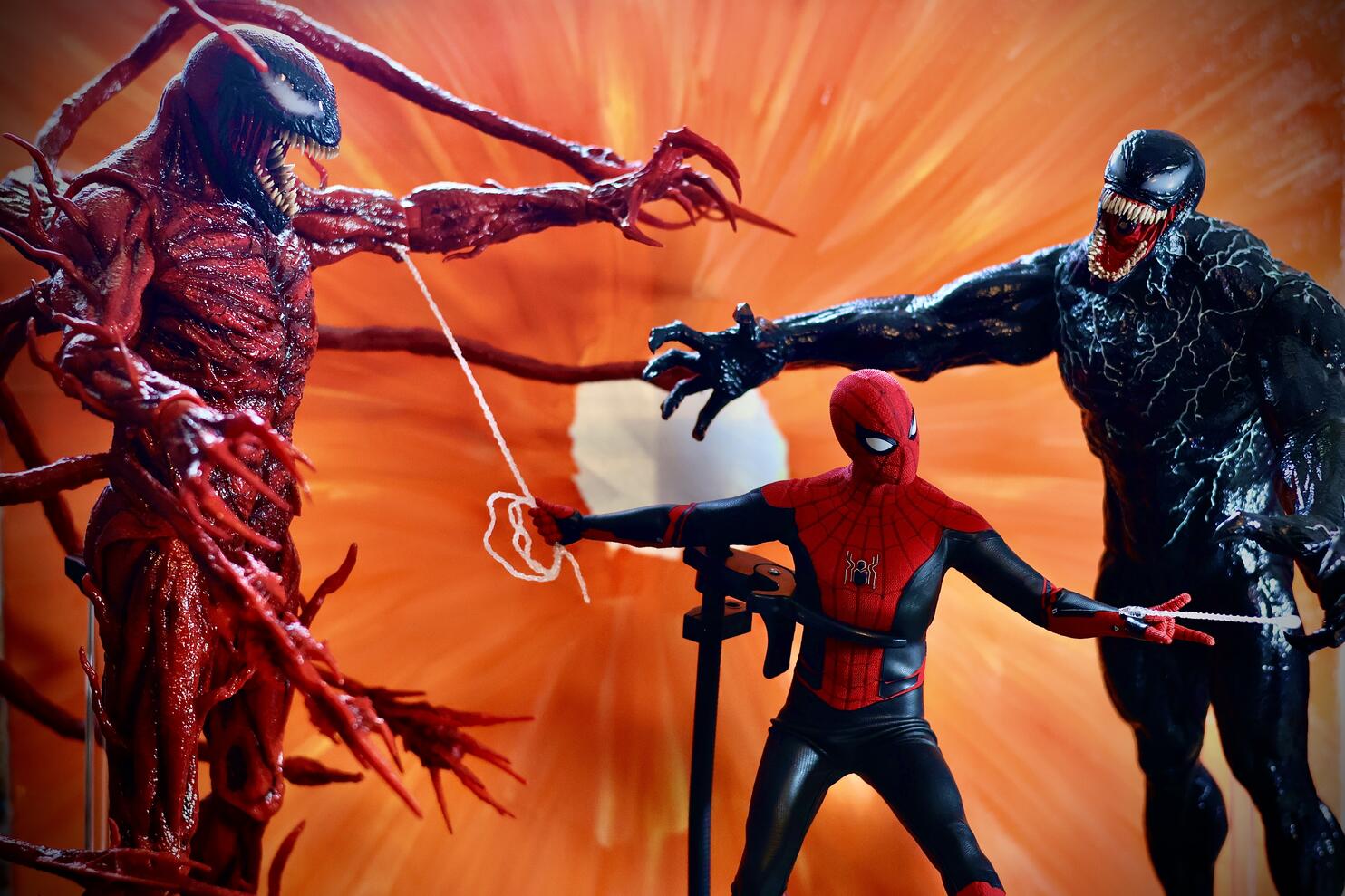 I put Hottoys carnage up on display. Made an homage to the poster I loved as a teenager in the 90’s. Think it turned out ok.