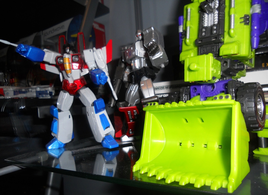 @ Vampireheart: Where did you get the globe? That thing is sweet! @ Hulk97: Nice man. I'm thinking of possibly getting Giant only because it's slightly cheaper. Plus it looks good next to FP Bruticus. Starscream looks soo much better without the hip kibble. I just can't bring my self to doing the mod and sawing off the pegs.