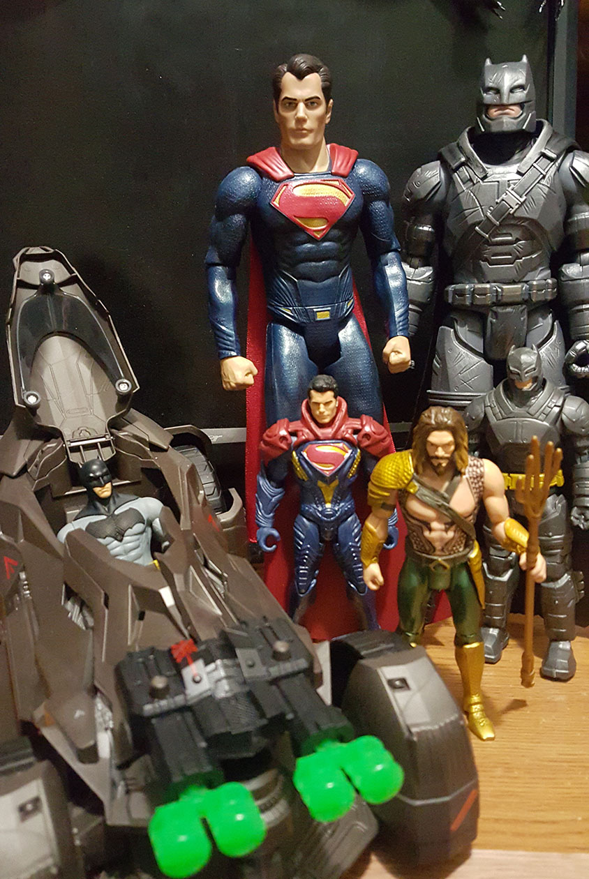I totally forgot to take a picture of the figure in package, but the last figure I bought before getting stuck at home in this blizzard is the BVS armored Superman figure and my video review sucks, I kept getting interrupted while making the video, and i don't know how to put parts of videos together, or even PAUSE the video as i am recording. You think that Apple would actually put a PAUSE button on their video recording app