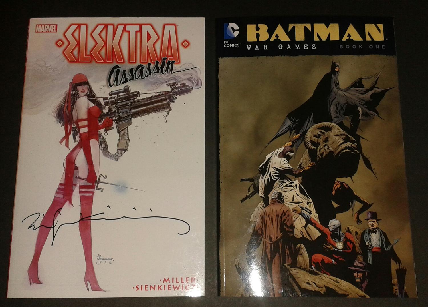 Elektra: Assassin trade paperback signed by artist Bill Sienkiewics and Batman: War Games Volume 1 i picked up for $20 Then the Batman Arkham Origins 3 pack with Dr. Harleen Quinzel, Electrocutioner and Lady Shiva that I got for $40 and a BVS Hot Wheels chase car The complete Imperial comics series signed by illustrator Mark Dos Santos |