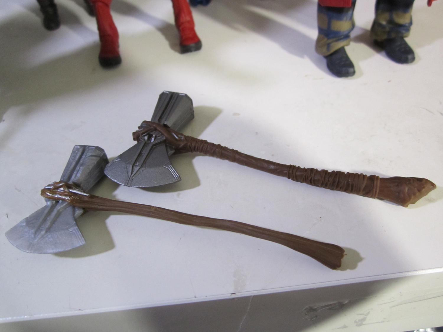 BAF Fat Thor out of package. The gauntlet that came with the Iron Man was meant to fit the BAF Hulk from the first wave. They actually made a new sculpt with a weaker and thinner Stormbreaker than the one that came with Teen Groot. Strange.