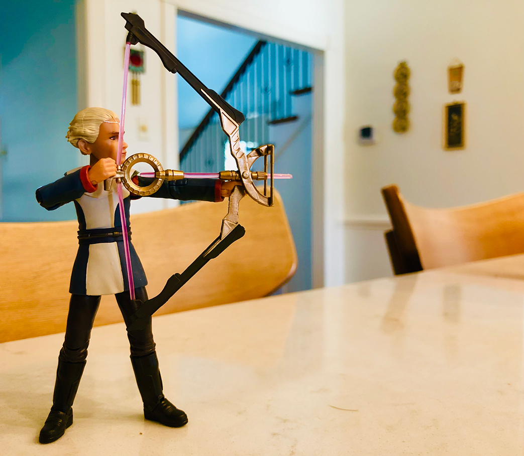 This Omega figure is really well done. Hasbro actually gave her more articulation than a standard figure. She has really deep butterfly joints and cut joints at her boots. She holds her bow much better than 95% of other archer characters. A lot better than shown in her weird ass stock photos. She is a great little figure.