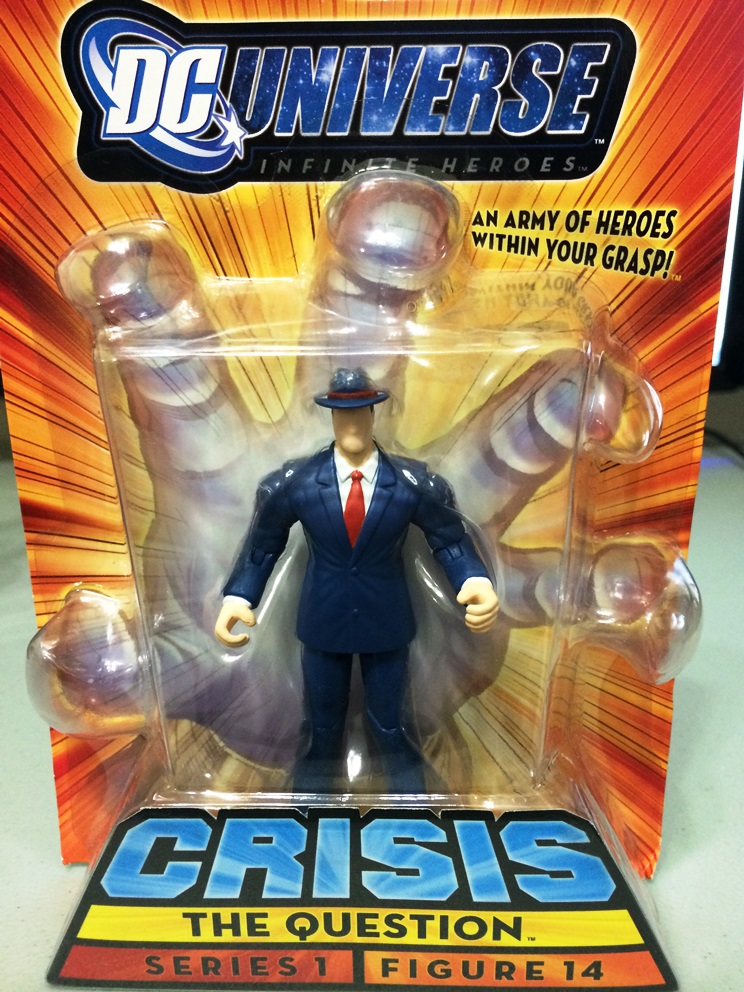 Another RARE Variant figure for my DC Fans. I'll let you compare it to the original (mine is at the very back of my shelf and hard to remove) and compare the two. Basically, This figure was a "test packing" as it was explained to me, to see if the multi-language would've worked for the DCUC Toy Line. We all know that it never did so that makes this figure a one of a kind! Also, compare the face of the two and the most obvious difference is the mouth and lips. ...And I picked up The Question DC Infinite Crisis' all 3 Variants! |