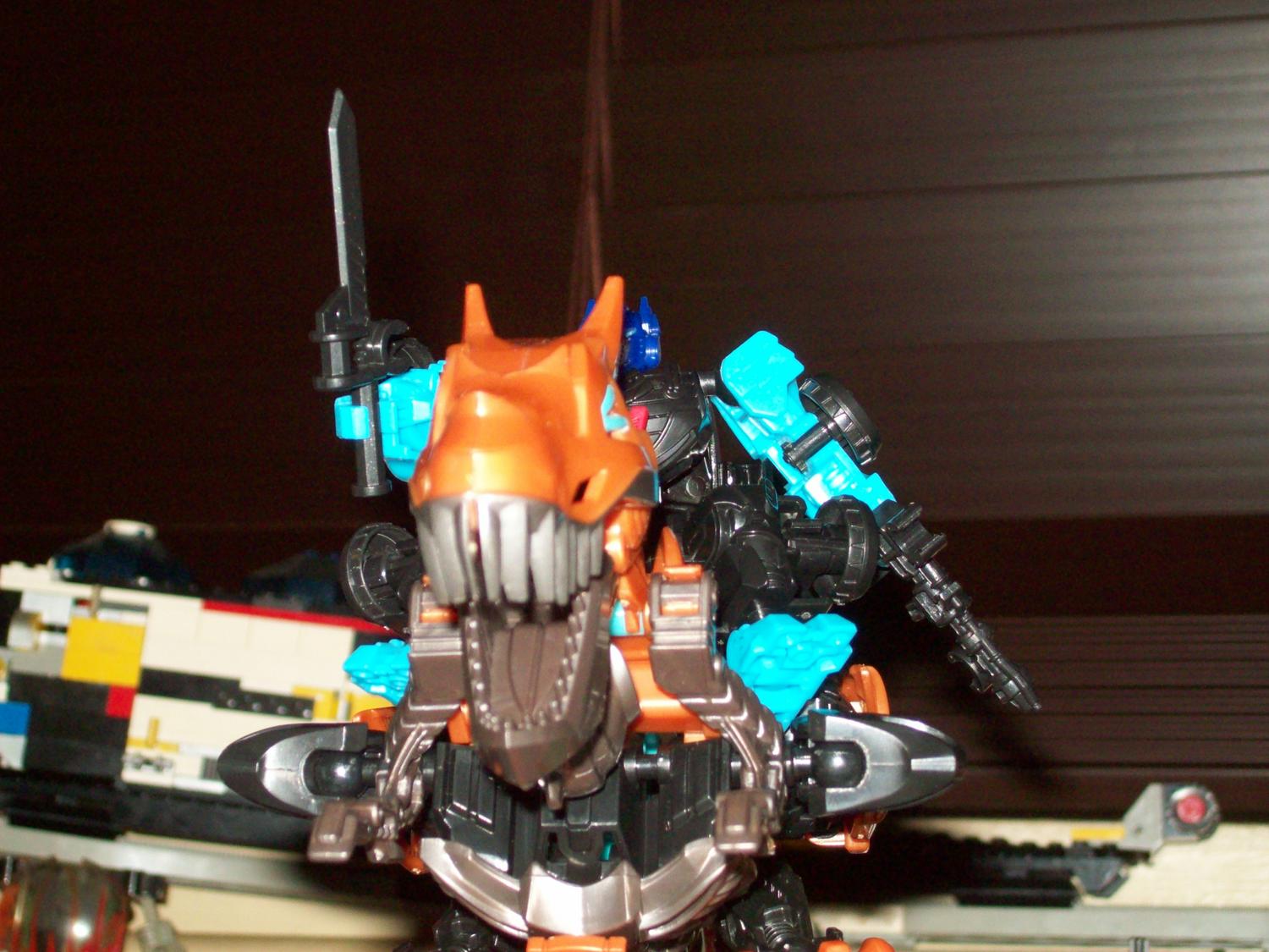 I'm really digging the Construct-o-bots Grimlock though. He scales incredibly well to my Halo mini figs. I'm torn now on wanting the Dinobots that way or getting the normal deluxe/voyager ones. Might end up getting both. Damn my wallets going to be crying this year. Hard to say on the Dinobots as to which ones are honestly better. I think all of them thus far are pretty nice, but I think the Construct Bots beat out the main line's figures ever so slightly. As awesome of aesthetic the Dino-Bot theme is on Deluxe/Voyager figures, they have some serious issues in Dinosaur mode (especially Slugg) with tabs not pegging in place properly due to the mixture of hard plastics and soft rubber parts. They fall apart quite easily in dinosaur mode (SLUGG...UGH!) and the way Grimlock's hands are fixed to his feet (Grim's feet plug into his forearms in robot mode, making his articulated wrist, well...non-articulating.) is really annoying and is more of a pain to deal with, which is a shame because the transformations are easy and fun. Plus, Voyager Grimlock's weapon SUCKS compared to Construct Bot Grimlock. At least you don't have to transform and deal with those ridiculous horns on Voyager Grimlock, and can keep them flat on his Carnotaurus mode. When you stick them up, he ends up looks like some kind of wierd, tiger-striped, two legged chihuahua. With all the Hasbro bashing that people do, kudos to them for at least giving us that option.