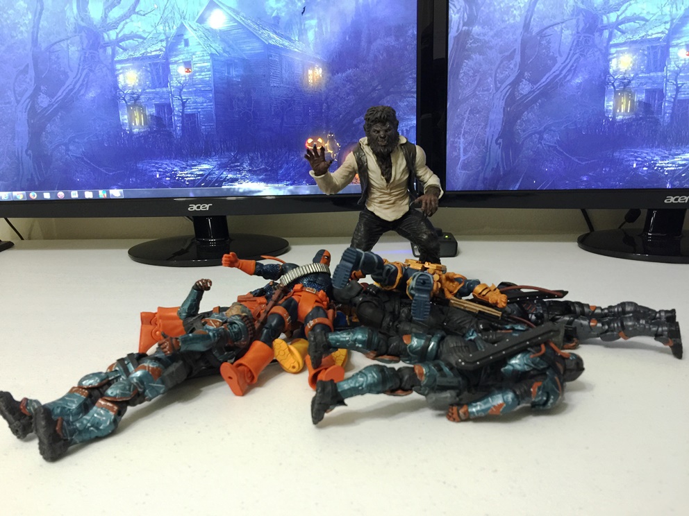 Found Deadpool and Boba Fett @ TRU and Target respectively, and Deathstroke/Arrow 2 pack @ Hastings.com and the unmasked Deathstroke I had found two a while back so I opened one to do the Deathstroke Multiplicity… And the Wolf, Mike and Jason... I had them already but they wanted to wish you all a Happy Halloween... Haha |