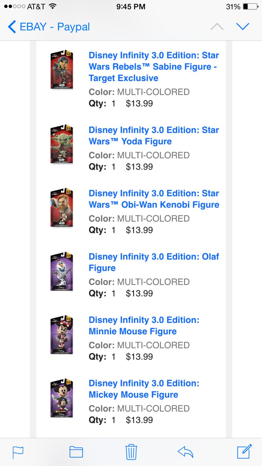 Staying on the Disney Infinity subject...I went on a Disney Infinity rampage "a la" 3.0, Lol! I pretty much got everything available both online and in person @ Target, ToysRus, Walmart, Best Buy, Game Stop and Amazon...Found great deals @ Target (buy 2 for $10.00), TRU (buy one get one 50% off) and Best Buy (buy 3 items get 4th one free plus the gamers club discount).