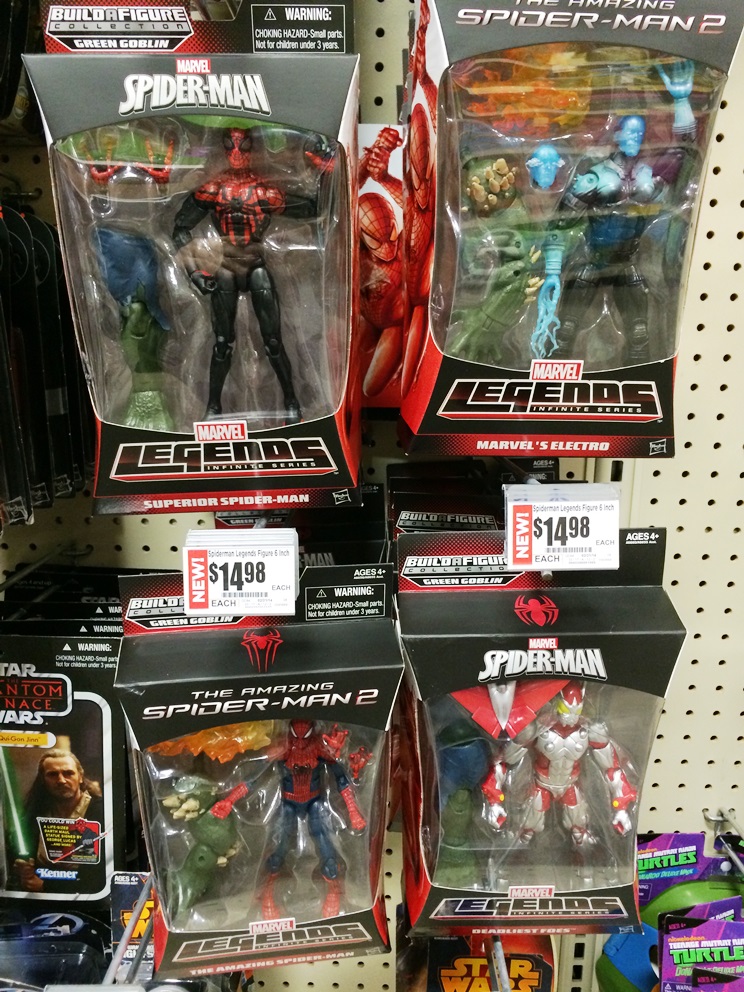 This is good and bad news. I need all 3 running change figures, but hate paying over $20/figure. If Target or TRU has the spiderman or cap figures cheaper, go take a picture of the item on the hook and go back to Walmart and they'll price match it!