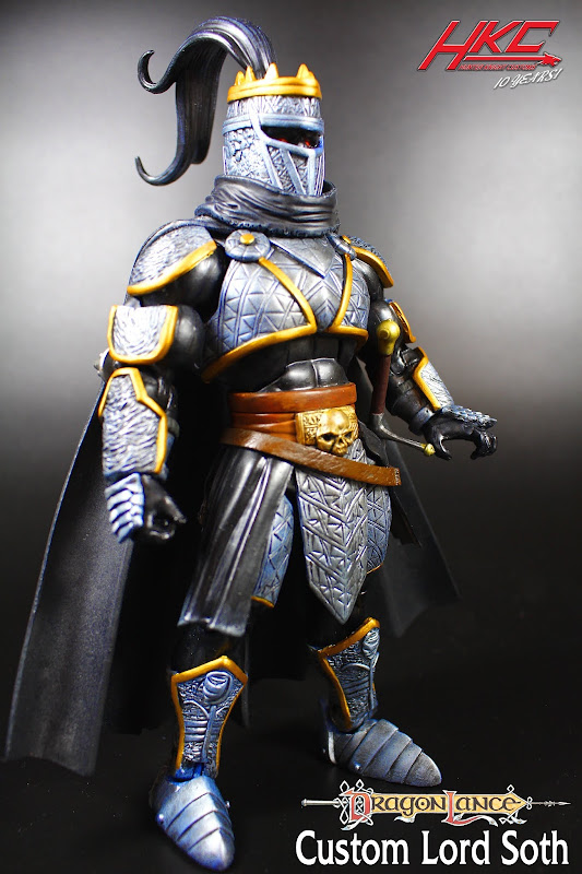 Hello fellow Arkers! HKC here to present you with my latest custom: Lord Soth! He was a commission I made for a customer in 2016. He is just a Motuc buck with everything else sculpted from scratch with Aves Apoxie. The Cape was donated by a Batman figure, while the ponytail came from one of the Star Sisters. His armor design is a mashup of several artistic references since his armor tends to vary from artist to artist.