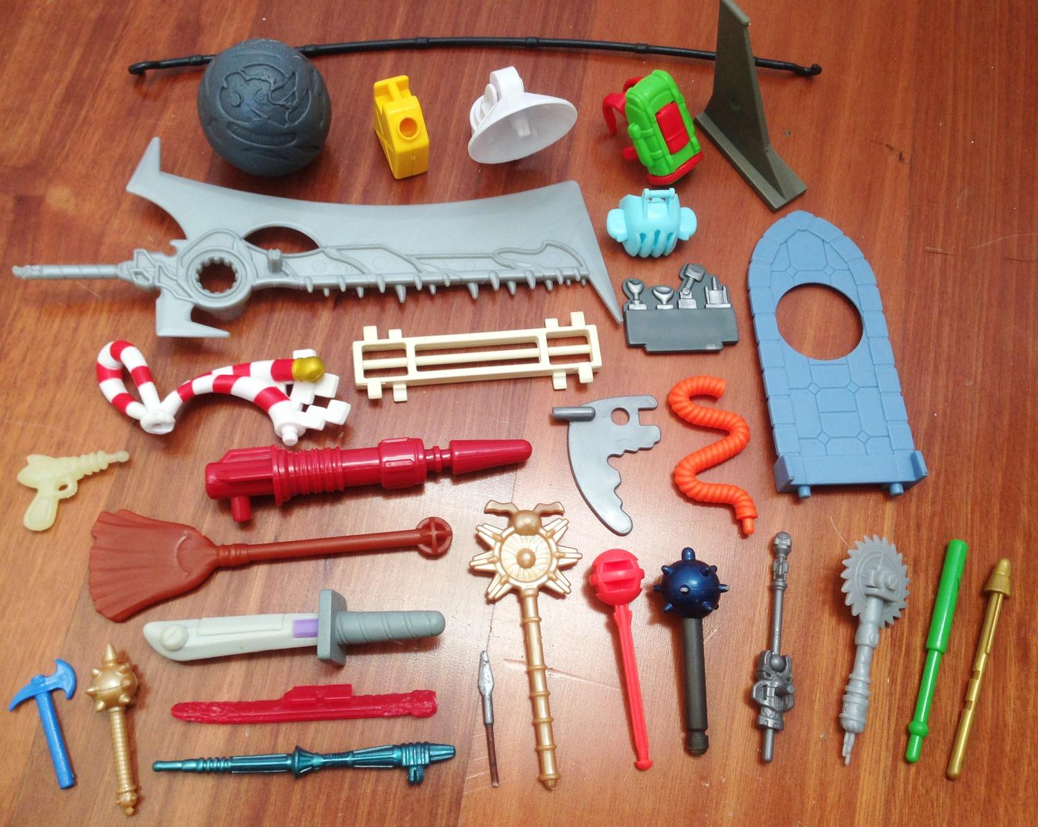 Pic 8. The yellow gas can and the blue axe are Playmobil i think.