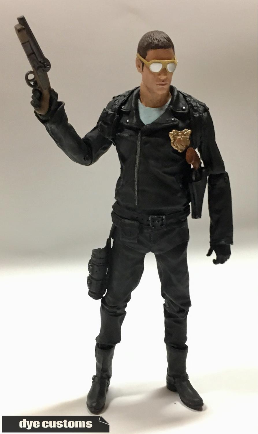 I wanted to make a officer based on the ones in Mad Max before everything crumbled and Max became "Mad".... So here is a Highway Patrol Cop from Mad Max! Body is a McFarlane Negan, head is a Battlestar G Helo, badge and gear fodder parts. All repainted and ready to run down the bad guys! Last edited by dyecustoms; 07-27-2017 at 02:07 PM.. |