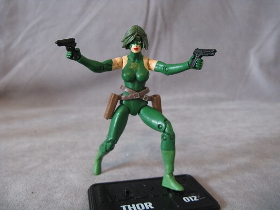 I swear this chick looks different in every single panel she appears in. Light green boots, dark green boots. Light green belt, brown belt, silver belt even. I finally just picked a panel and went with it. Sigh. Anyway. I believe this is Amalgam custom number 5 right? Better than most. Think I went to four on my Sinister Six series. lol This here is the amalgamation of Catwoman and Viper. Sworn enemy of Bruce Wayne Agent of Shield.
