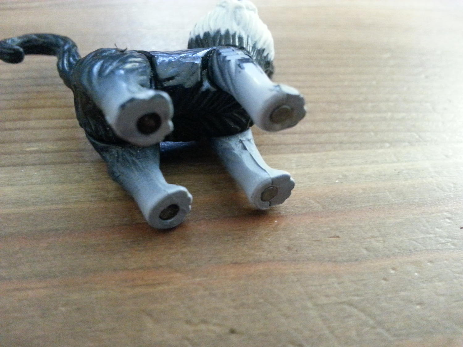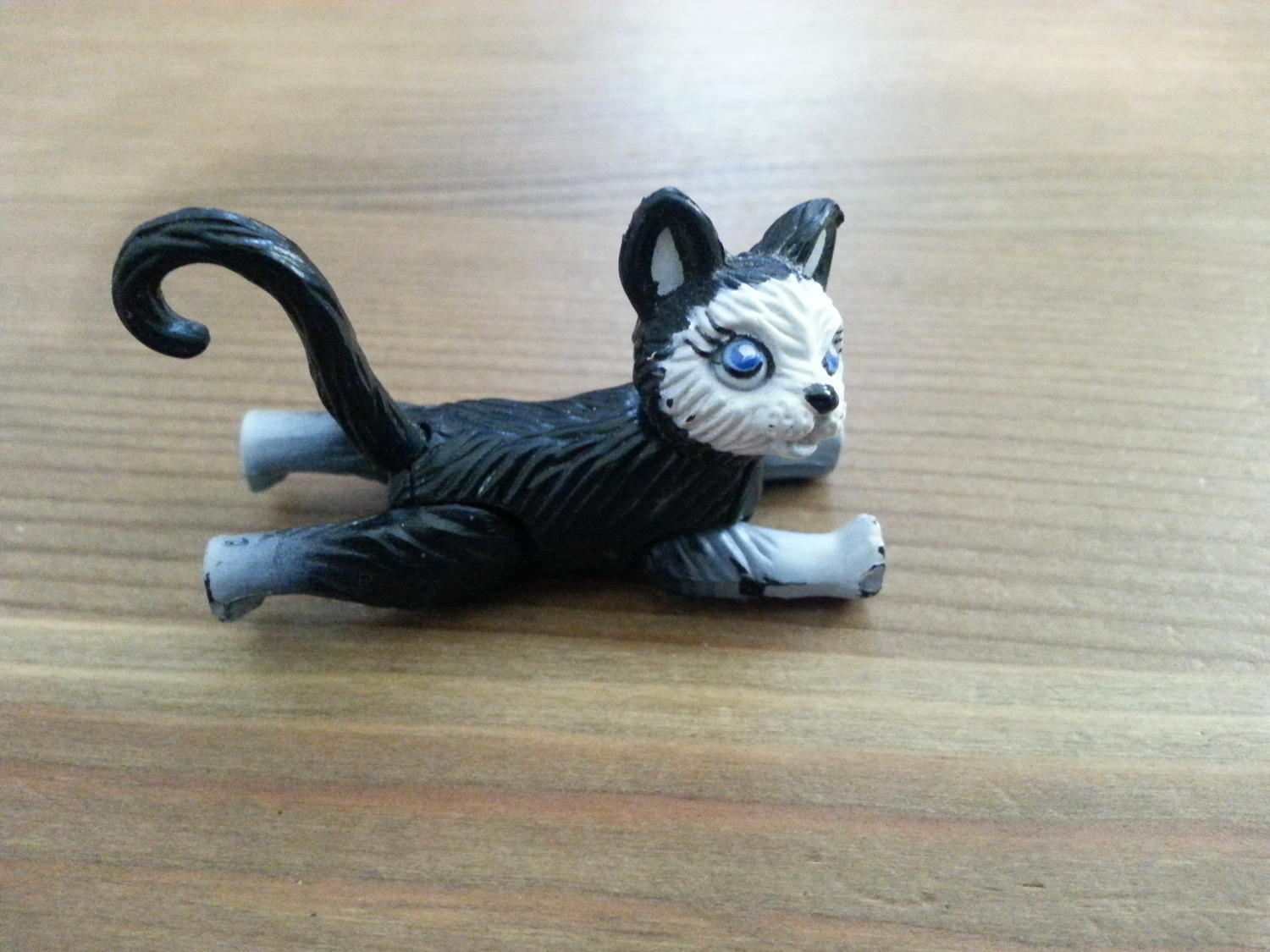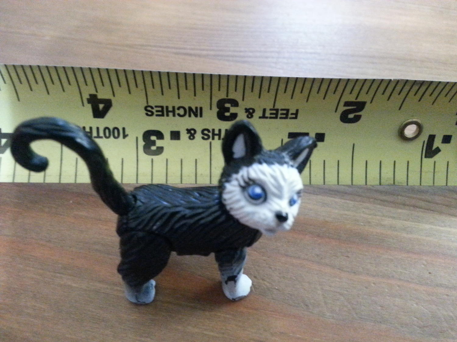 the cat is plastic and about 1.5" long. It has magnetic feet as it will stick to and repel from s and n on a magnet. There is no markings on it at all, both the legs and head pivot. Any help would be great thanks...