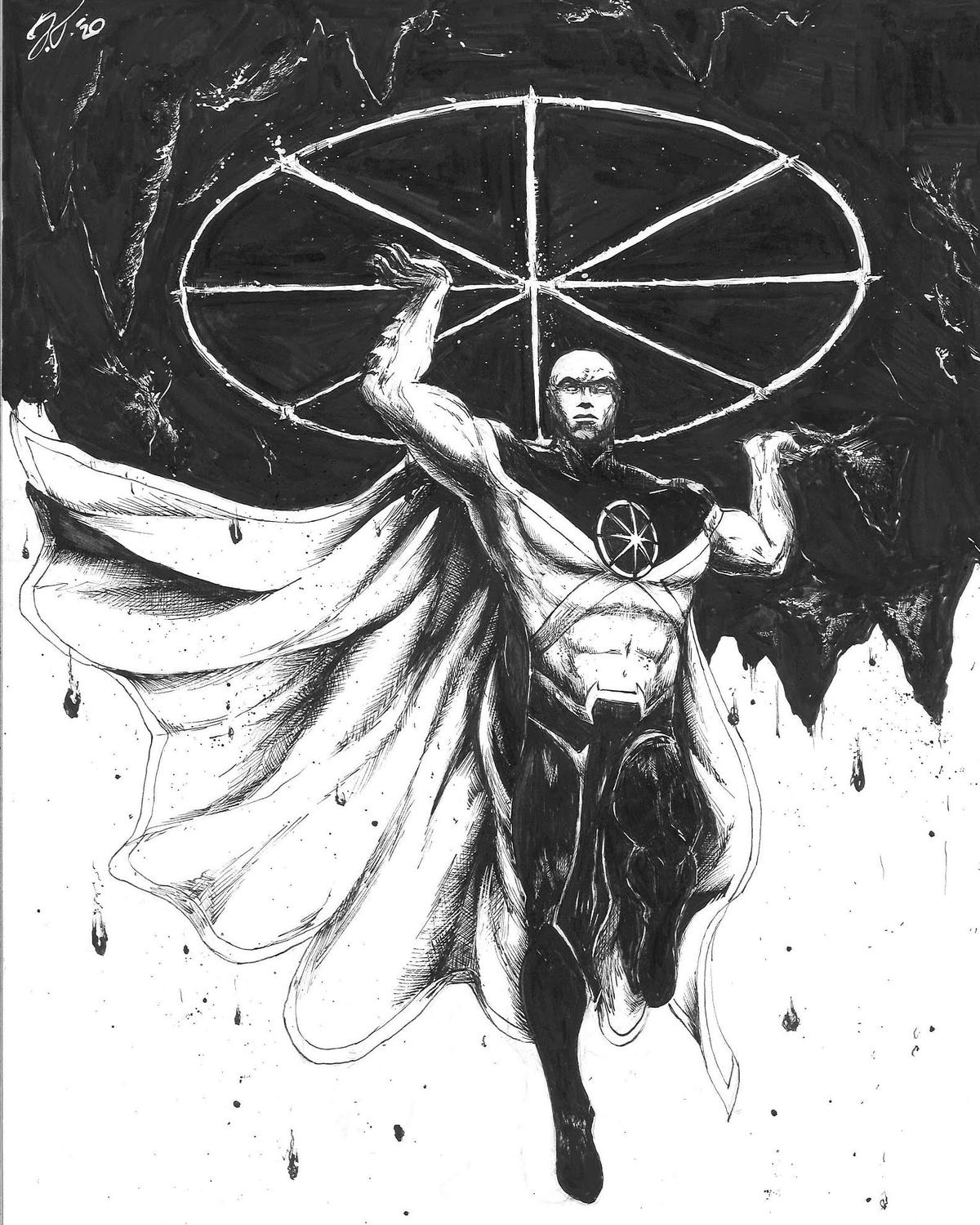 Ink and white ink on Bristol. This one was a gift for a friend.