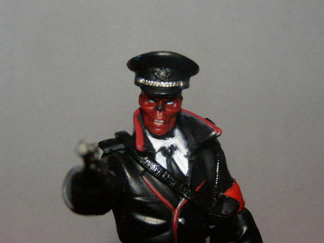 Ok. Just looking for some feedback if I should continue with the custom or if it has an odd look to it. I am thinking of getting rid of the collar, or just making it not as dramatic. Grey will be painted black, along with the hat, and a thin lair of Green Stuff on his shoulder for a nazi band. Think it will look ok? Head to small? Don't bother? Thanks for the feed back and I will probably have him up by tonight if everyone wants to see it lol.