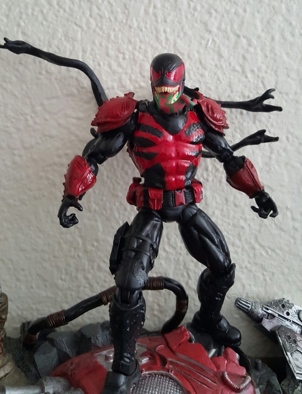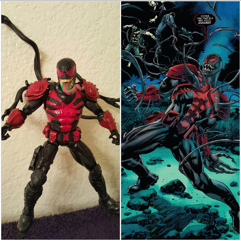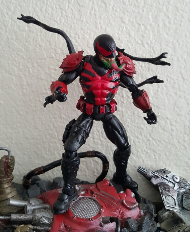 I opted to not change the legs on the Agent Venom body, as I preferred the armored look of the shins to keep with the armored body, and left them black to compliment the look we got from the recent Carnage issue. Hopefully this isn't a permanent look for Brock as I really had much higher hopes for his return, and the "Agent Toxin" look clearly rides the coattails of Agent Venom, who just turned intergalactic space knight. It really seems like a cheap way to push the Toxin character back into the spotlight, but hopefully we will get Eddie Brock and friend back to doing something ultimately more interesting and soon. Still...I know that Hasbro wasn't going to be putting this guy out anytime soon, and I'm quite happy with how he turned out! I hope you guys like him! Last edited by Trivial Psychic; 03-14-2016 at 12:56 AM.. |