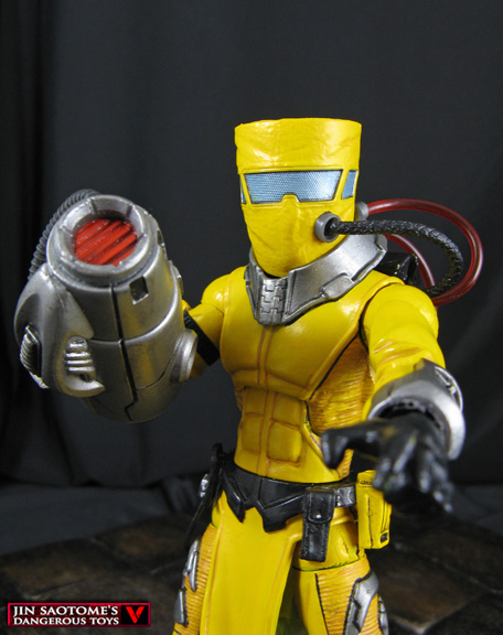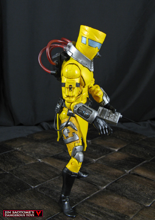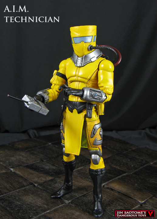 They're weird, they're yellow, they're out to rule the world! Here's a custom Marvel Legends A.I.M. figure that's part of the Tech team. He was created using an X men classics Magneto body, ML Infinite AIM Trooper head, Fantomex hands and lower legs, and an assortment of different belts, pouches, and devices like a Dessad backpack with hoses coming from it. There's a breather hose that attaches to his helmet and a DCD Cyborg's arm cannon provides the perfect 'advanced weapon' for this AIM Technician to work on...or use against the enemy!