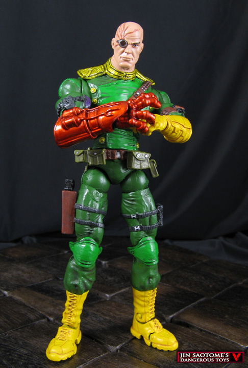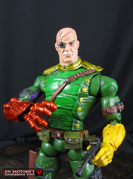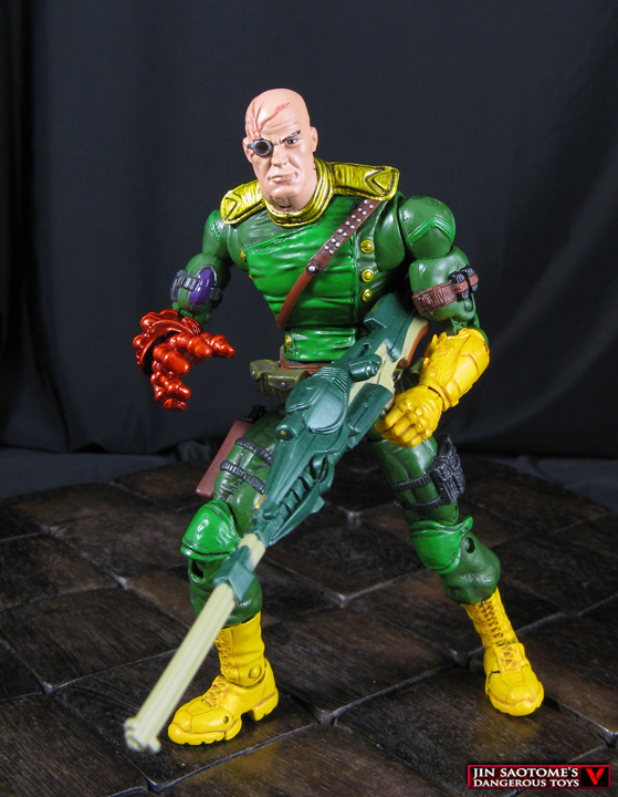 Commanding the Hydra army this custom Marvel Legends Baron Von Strucker figure is ready to take on S.H.I.E.L.D at any moment. He was created using an Air strike (House of M) wolverine body, Marvel Now Cap A left arm, movie Titanium Man right arm and MU Apocalypse hand for his gauntlet, and stealth cyclops lower legs. A DCU Lex Luthor head was modded with sculpted scars and a monocle and I added an Ultimate Cap WWII belt along with some other details. One classic green/yellow paint job later and Baron von Strucker's reign of terror was ready to begin!