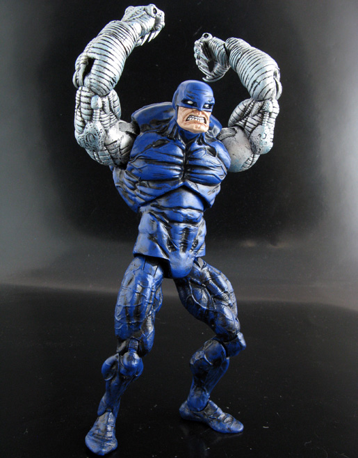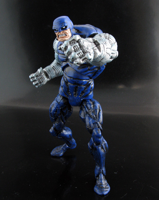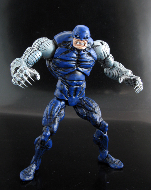 Watch out Wolverine because Cyber is after you! This poison-clawed maniac was made from a Gargan Venom body, resculpted DCU Mongul head, Spiderman Ultimate Rhino upper arms, Marvel legends Colossus lower arms, and pointy claw tips. His arms have shiny metallic blue highlights. Fans have asked me to make a Marvel Legends Cyber for a long time. Sorry it took so long but here he is ready to dish out some pain.