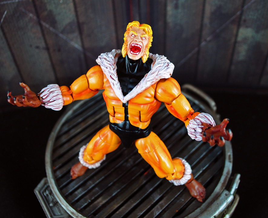 Best custom version of 1st app Sabretooth ever, ever, ever! Looks like he jumped outta a John Byrne colored sketch! Who sells both versions of his head if you don't mind me asking.
