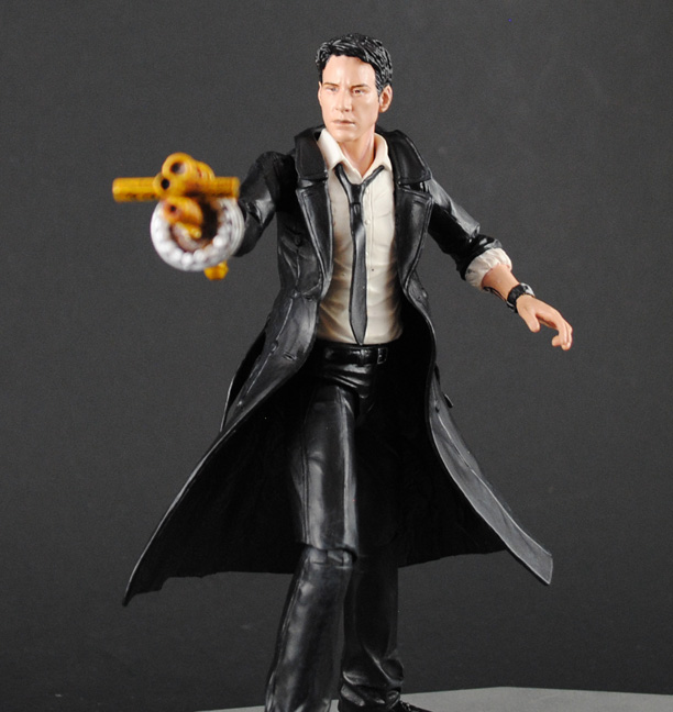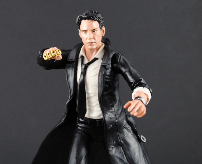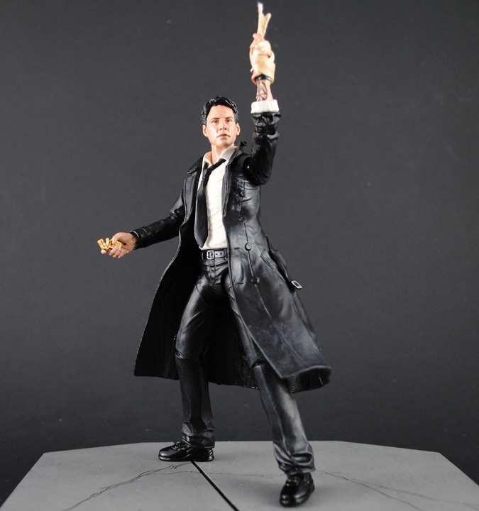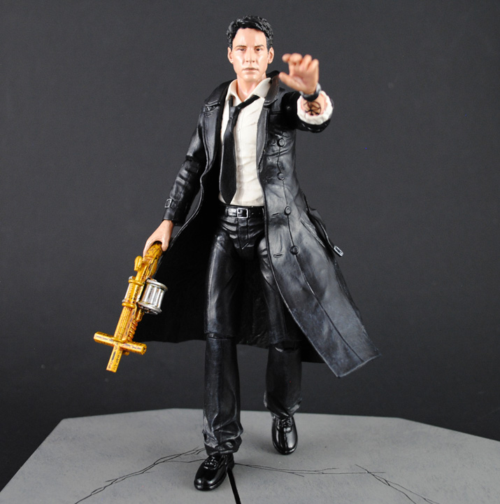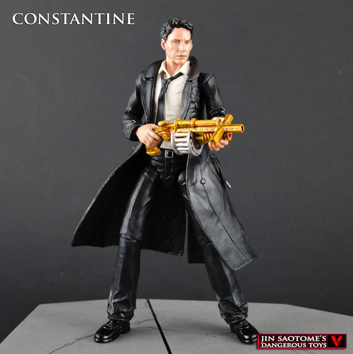 Moody, dangerous, and damned, John Constantine walks a fine line between worlds in hopes that he can redeem himself by battling the forces of evil. This custom movie John Constantine was created using the DC Collectibles comic Constantine body, McFarlane real world Neo head and various different hands. Articulation had to be added in the wrists, waist, hips, and ankles for the figure to be properly articulated. Constantine's holy shotgun was created from scratch parts, his lighter, ancient bandage, and holy brass knuckles rounding out his arsenal. A couple of new alternate hands and a movie style paint job later and Constantine is ready to raise a little Hell.