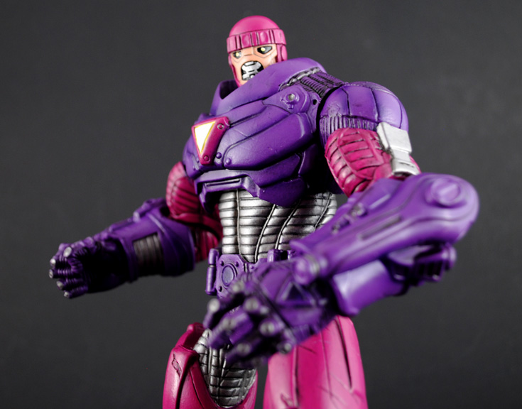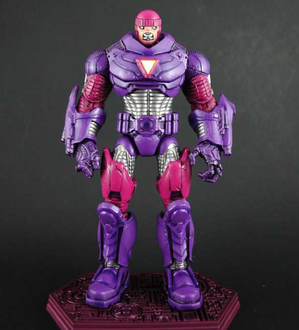 Deadly robotic hunters, the Sentinels roam their sectors searching for mutants to eliminate. Never before have the X-men fought such an unstoppable army and today I have one created for either your Marvel Legends or Marvel Universe collection. The Sentinel was created using a deluxe DC Collectibles Lex Luthor Power Suit and modded Heroclix Sentinel head. Sections of the suit were modded to allow for more articulation such as the waist, arms, and sculpt was added for certain details. The Sentinel was wrapped up with airbrushed shading and highlights sealed with a mix of 50/50 Liquitex matte and satin sealer. Sentinels come in all sizes these days so he scales well with both Marvel Legends and Marvel Universe figures as a medium-build Sentinel.