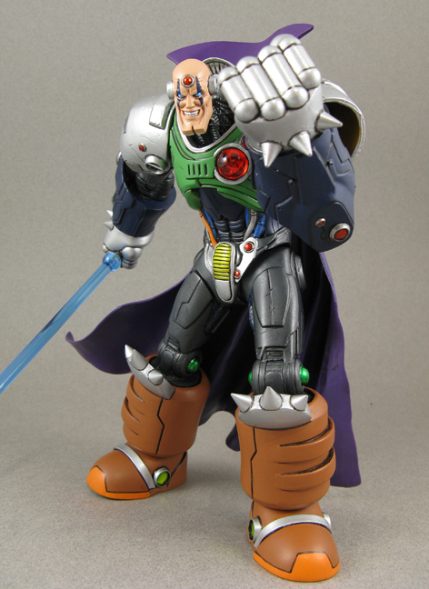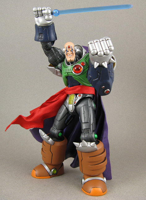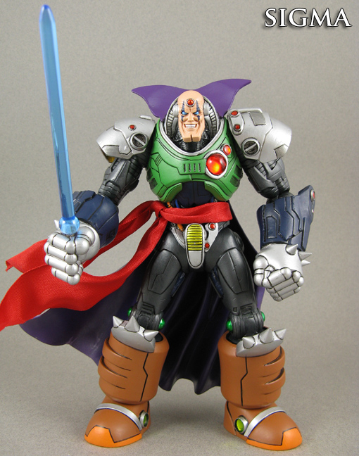 Here's my take on a 'Marvel Legends' style Sigma from Megaman X. He's in scale and design-wise to my X and Zero I made last year and stands a good 8 1/2" tall! He was made from a DC Direct Parademon body, DCD Powersuit Lex Luthor hands/lower legs, Orange Lantern Luthor modded head, and a Magneto/Mr Sinister cape combo. His plasma saber is removable and I'm making an energy blast or two for him as well. Various glass gems/reflective metallic domes were also used for his ports so that they shine in the light.