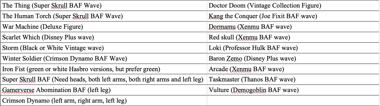 All figures in the pictures are from a smoke-free home and adult-owned. The last image is my want list but I'm open to offers.