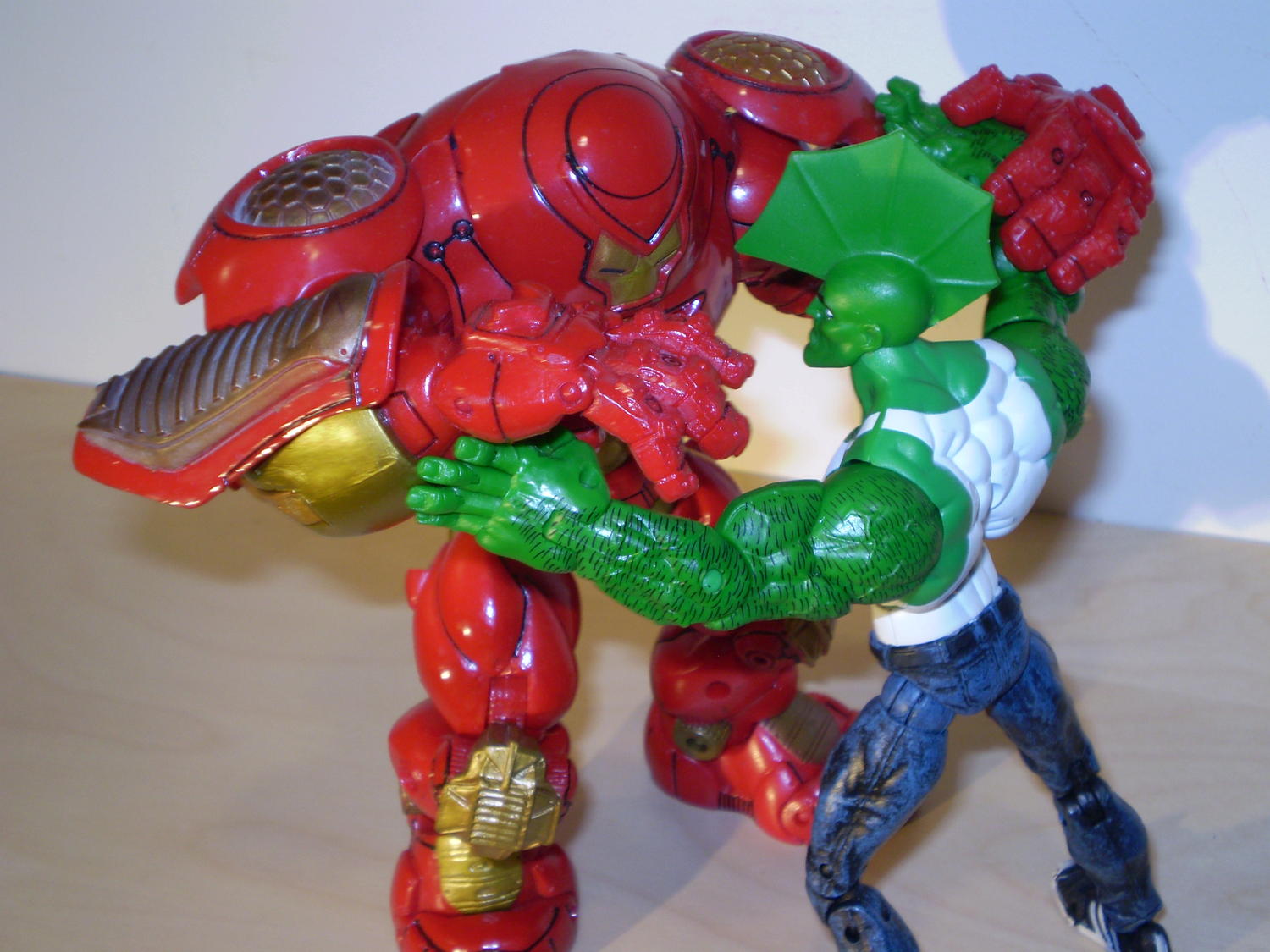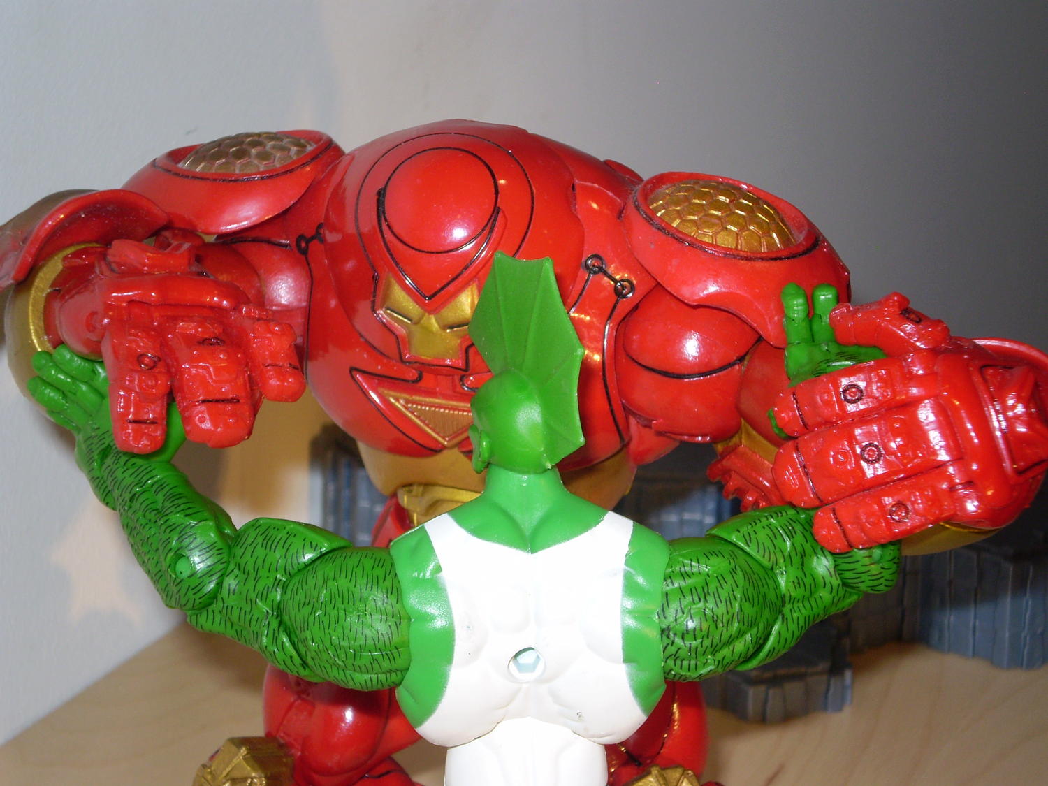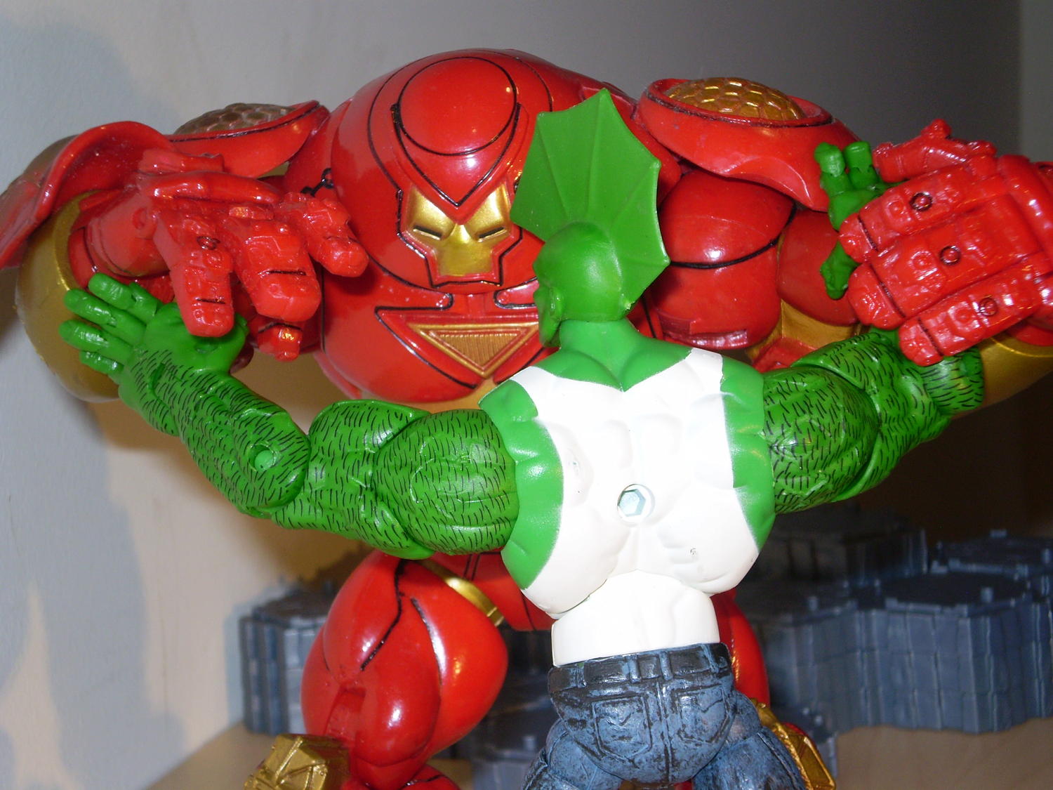 No pose off? ![]() Well, I took some preliminary pics before we move to another thread. I was able to surprise even myself with some of the poses I could get the Hulkbuster to assume. Given time, I'm certain I can tease out a reasonable variety of poses from this large/bulky fig design. Mind you, I picked an unlikely antagonist for my thematic battle with the Hulkbuster. I've never actually seen a Hulkbuster succeed in its intended task of busting a Hulk. Fighting? Yes. Busting? No. So, I picked a substitute jade hero: Savage Dragon. It seemed appropriate, because his smaller stature allows the Hulkbuster to be seen while grappling. Until I see otherwise, I still maintain that the Hulkbuster holds its own against most large figs whether they came out then (2005) or now....That said, everyone one is entitled to whatever "remakes" they'd like...if you've lost interest in our pose off (lol)...I understand. I thought it'd be more fun than arguing ad nauseam over subjective opinions that are not (in all likelihood) going to change. Additionally, I obviously like taking pics and will create any excuse to do so. It helps me improve at the process and, like you, I think the efficacy of taking pics to illustrate a point is undeniable...depending on the picture that is... ![]() PS: sorry Spyne for the tangential hijack here....it's still sort of on topic. |