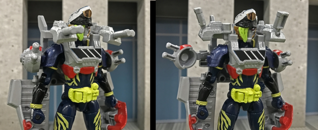 His accessories seem lacking. Like he should have a weapon attachment or two.
