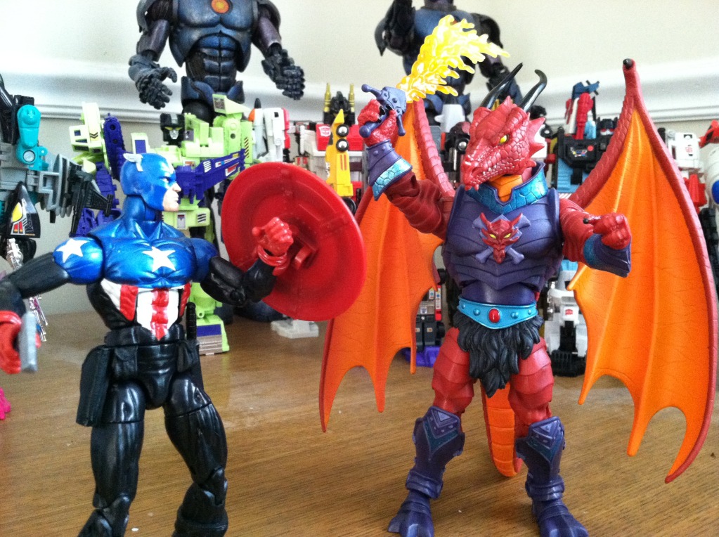 Anyway, here's some pics of Draego-Man (please disregard the mini robot-convention in the back)!!! |