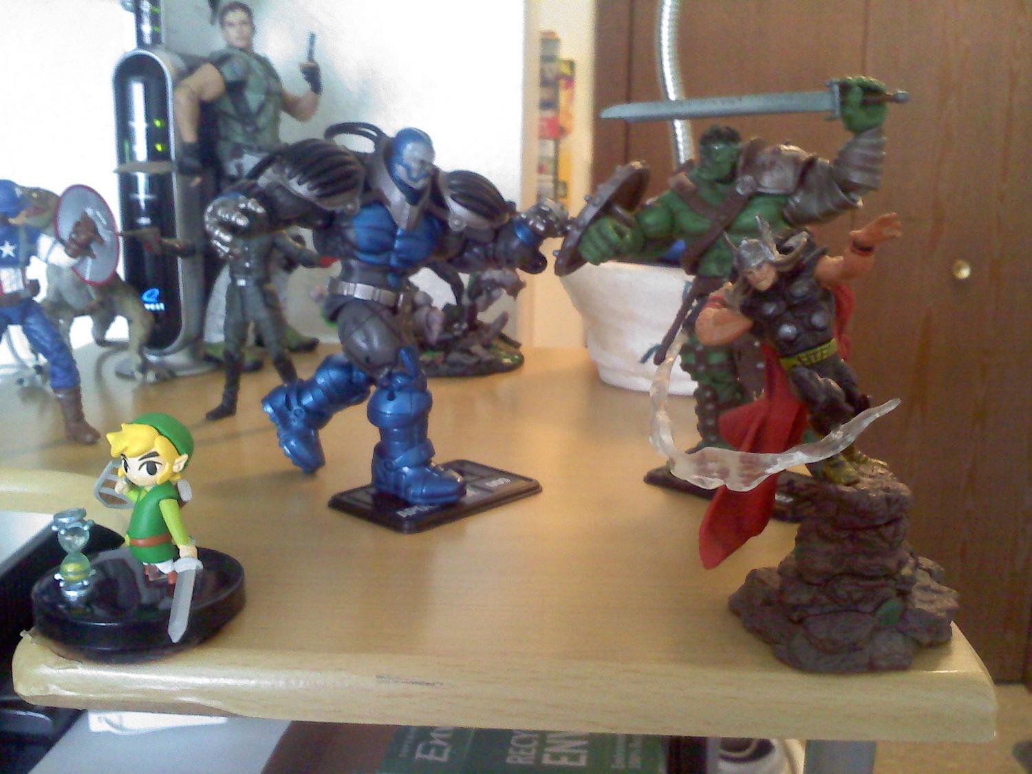 Lol, I have the same desk you got in the green vs yellow lantern battle. Nice collection of DC, MK, and MU figures. I saw Dirge at the store and passed him up. Yup, I'm still regretting I did that.
