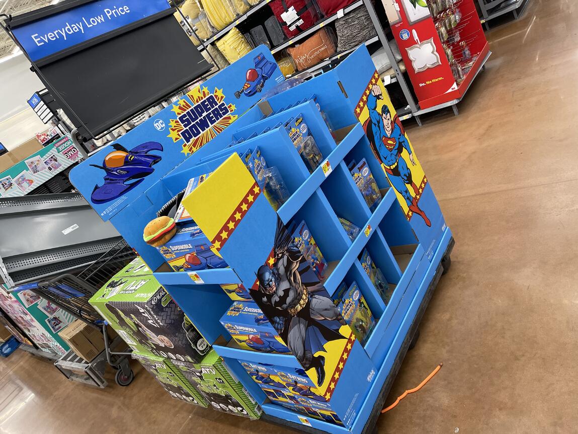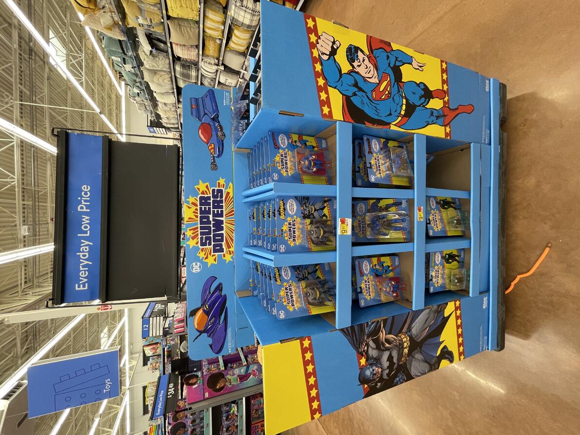 I've been to stores that have the shelf stickers for these in place, but no Super Powers product at all. In general the toy sections of Walmarts here are currently a war zone. Their resets are not going well at all, and there are aisles glutted with stacks and stacks of clearance merchandise. |